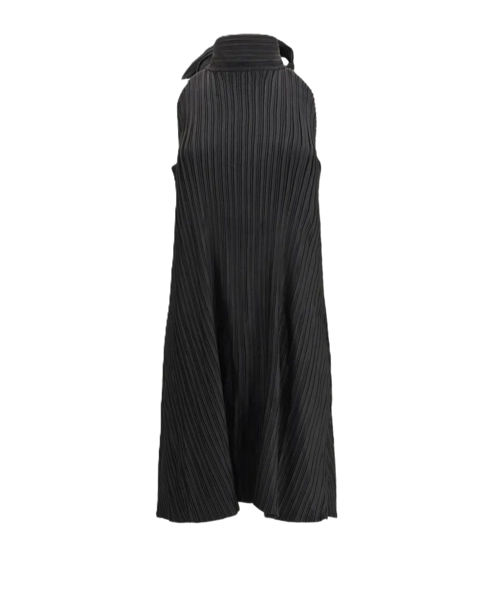 L'abito Wavy halter di Gongdid Design è un capo raffinato e versatile, caratterizzato da uno scollo all'americana e una silhouette senza maniche. Il design ondulato, arricchito da un tocco vintage, presenta una balza che scende fino all'orlo e una lunghezza pensata per coprire leggermente i fianchi, combinando leggerezza, eleganza e versatilità in un capo distintivo. Colore: nero