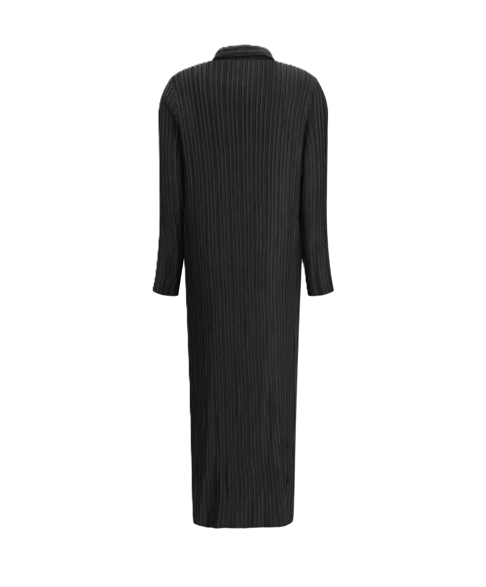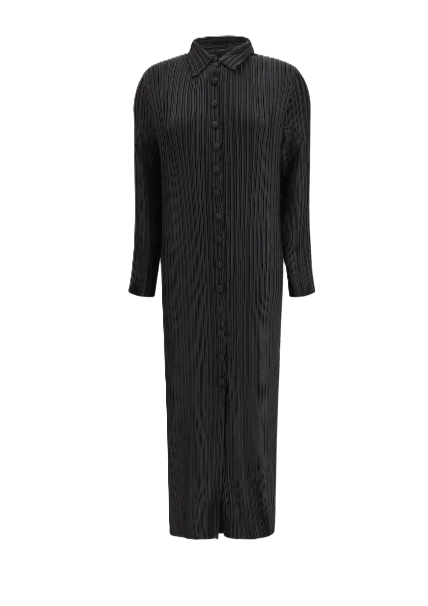 Abito lungo con bottoni nero, plissettato, maniche lunghe