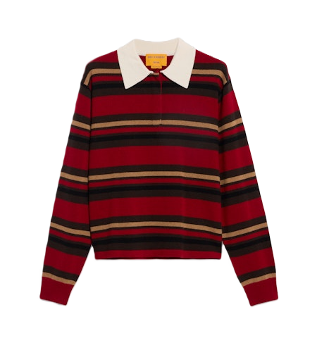 Polo 'Collegiate Stripe' in cashmere a maxi righe, colletto e bottoni, manica lunga con polsino e spalla scesa.