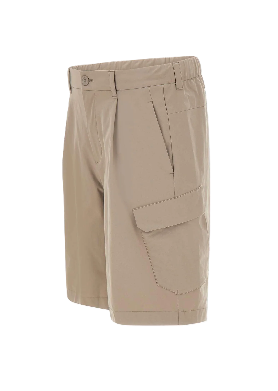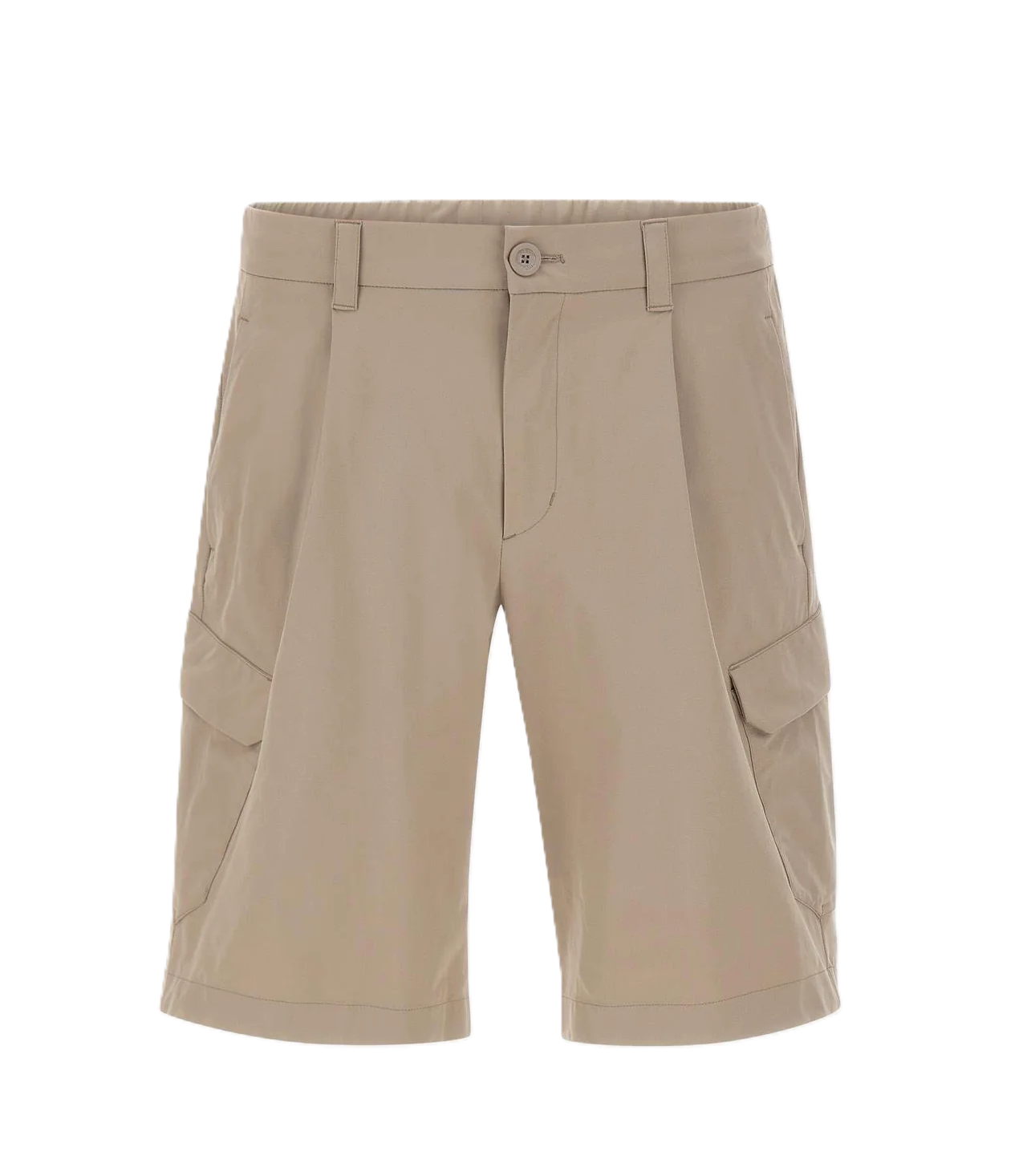Shorts uomo Herno color beige, pensati per un look estivo contemporaneo che unisce estetica pulita e funzionalità. Il modello presenta vita con elastico sul retro e coulisse interna per un comfort regolabile, completata da passanti per cintura e chiusura con zip coperta da patta e bottone. Le pinces frontali definiscono la linea, mentre le tasche anteriori all'italiana, la tasca posteriore a filetto con bottone automatico e le tasche cargo ai lati aggiungono praticità senza rinunciare allo stile. Vestibilità regolare, ideale per outfit casual e smart casual.