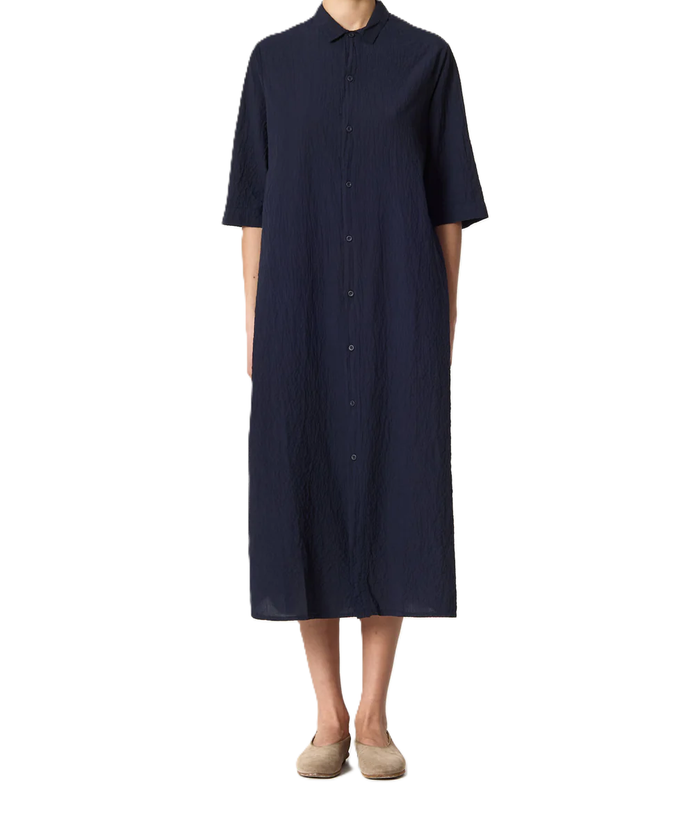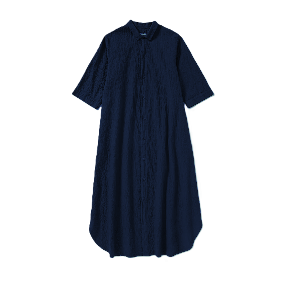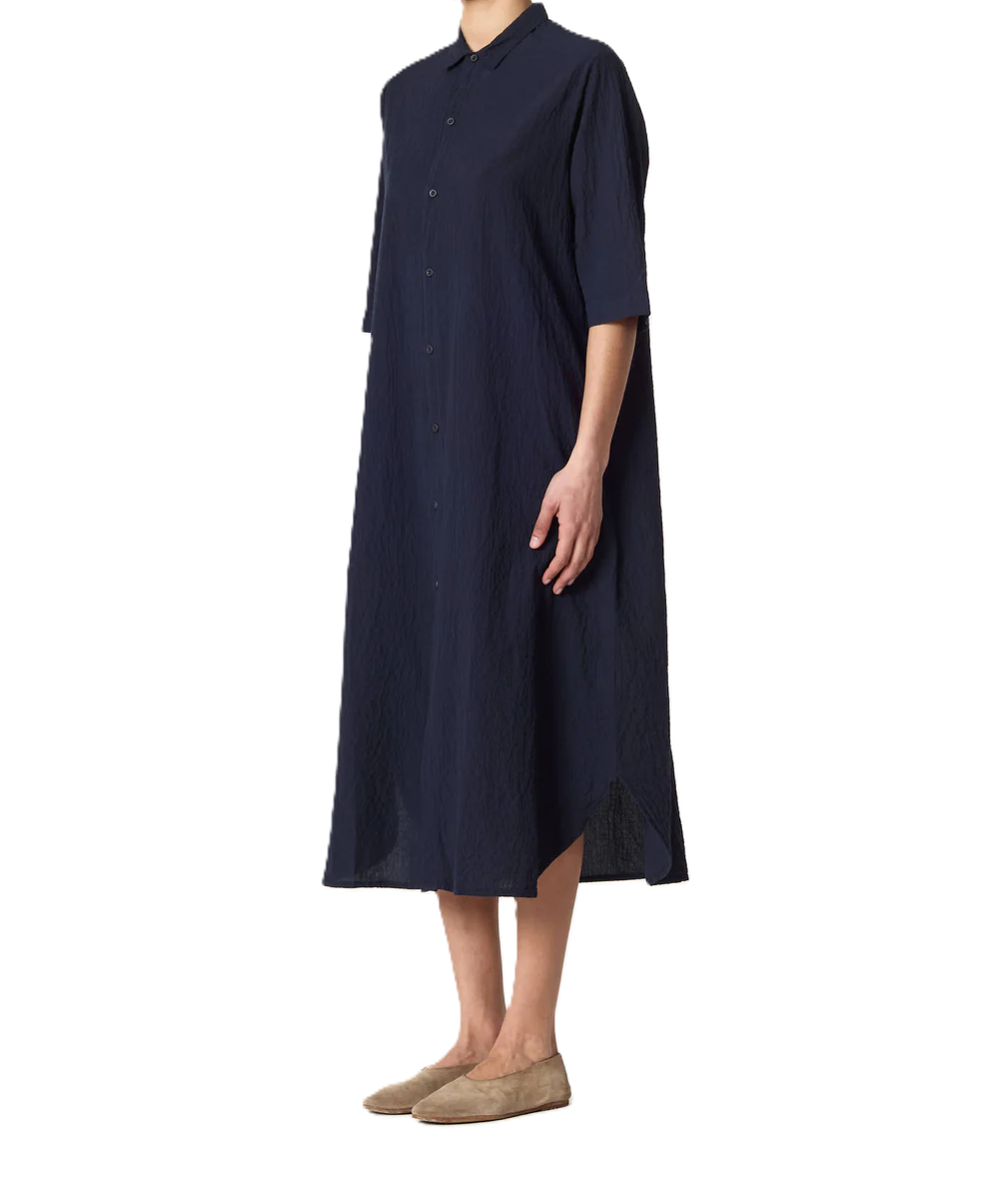 abito midi, maniche al gomito, cucitura rotonda e collo polo in tinta unita con onde stropicciate
