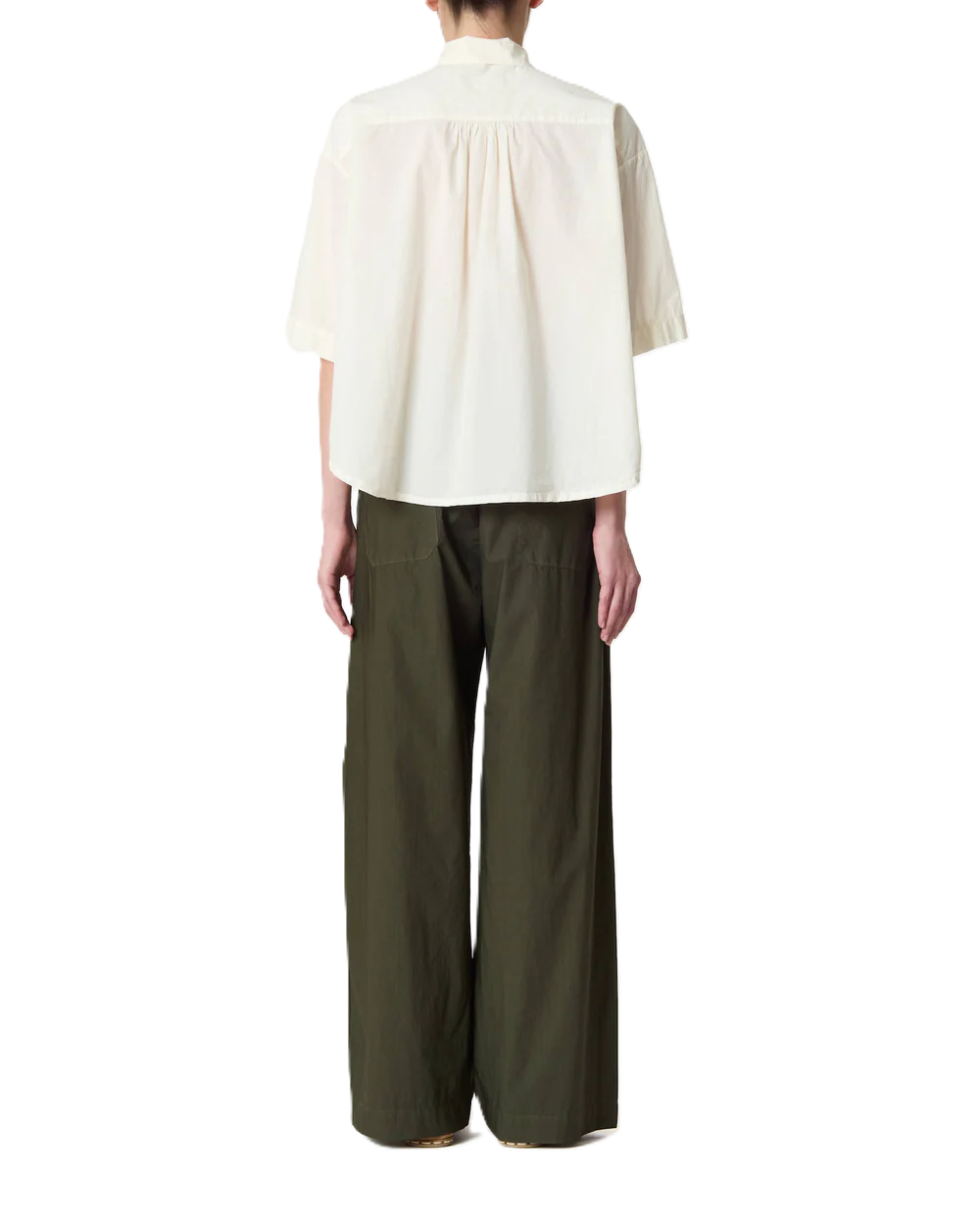 camicia a maniche corte leggermente oversize con maniche ampie, collo a polo e bottoniera in popeline di cotone leggero