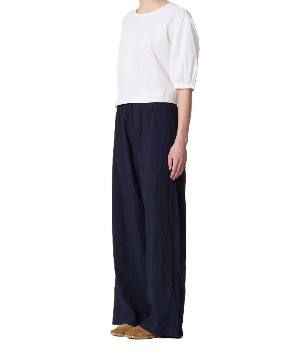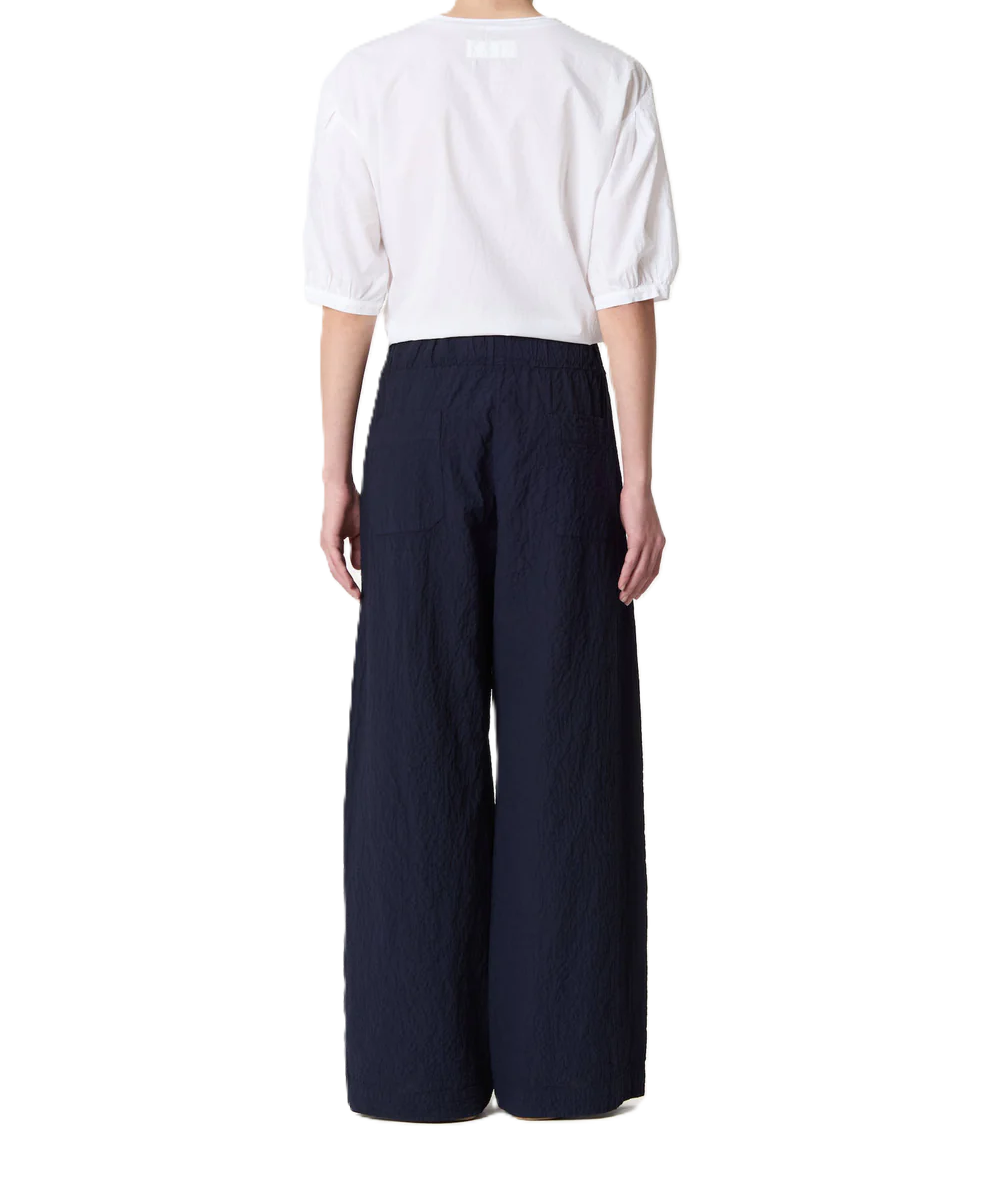 pantaloni a zampa in tessuto semplice e stropicciato