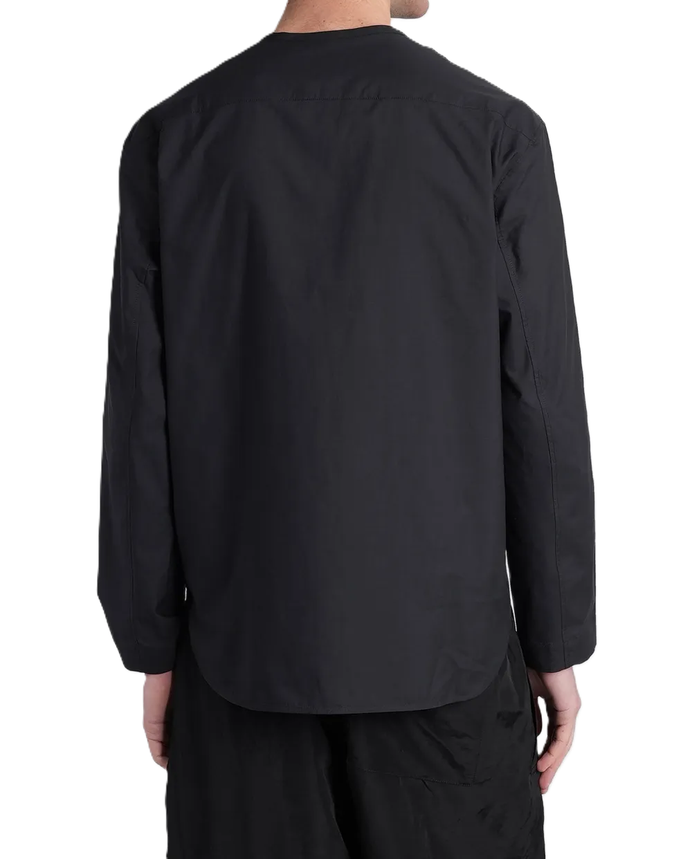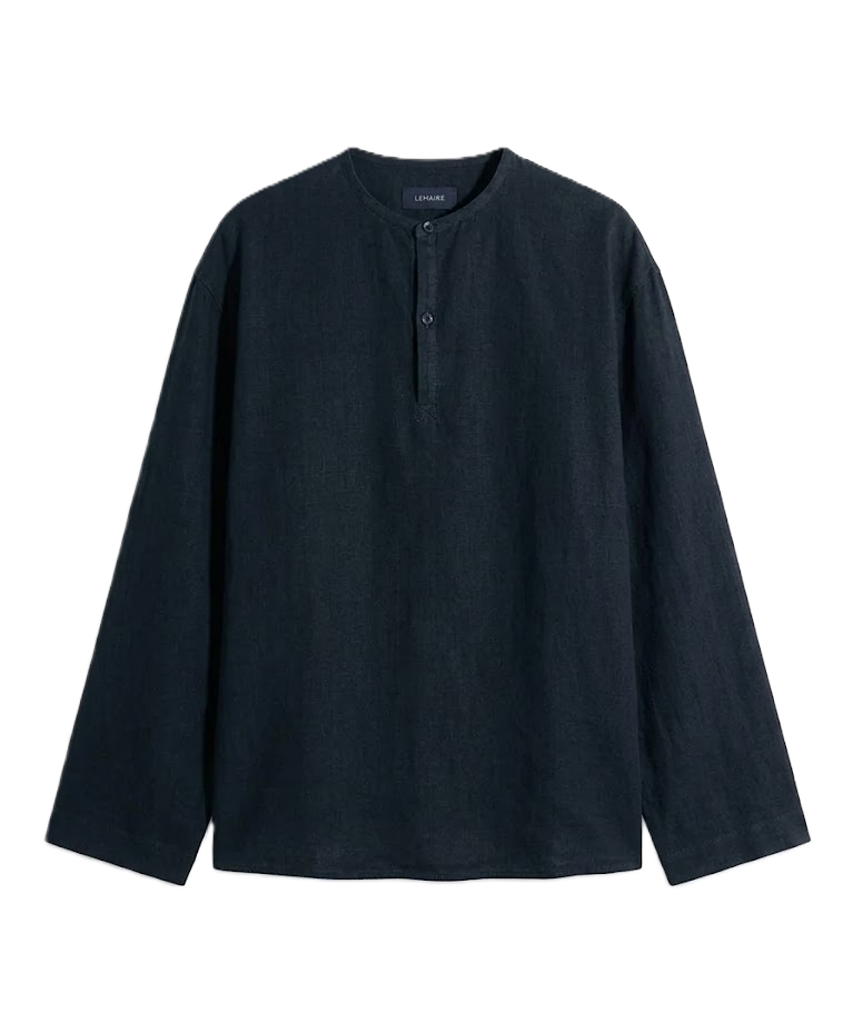 Camicia con dettaglio bottoni sullo scollo tondo, colore inchiostro, maniche lunghe, taglio classico