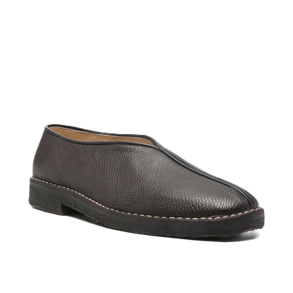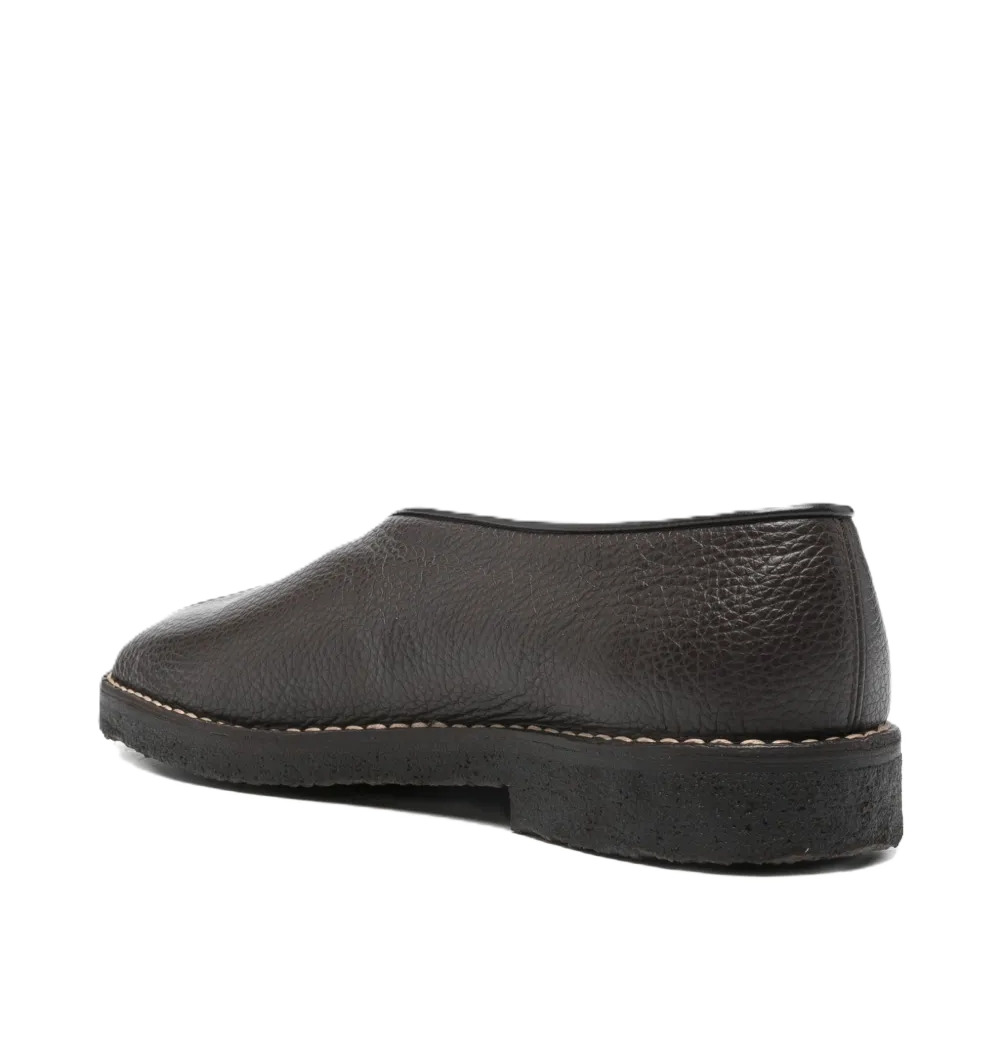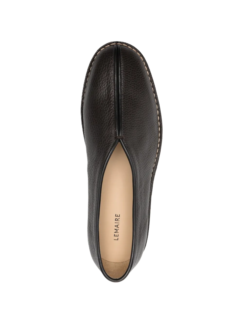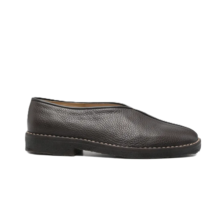 mocassini piatti marrone scuro, punta tonda, suola piatta