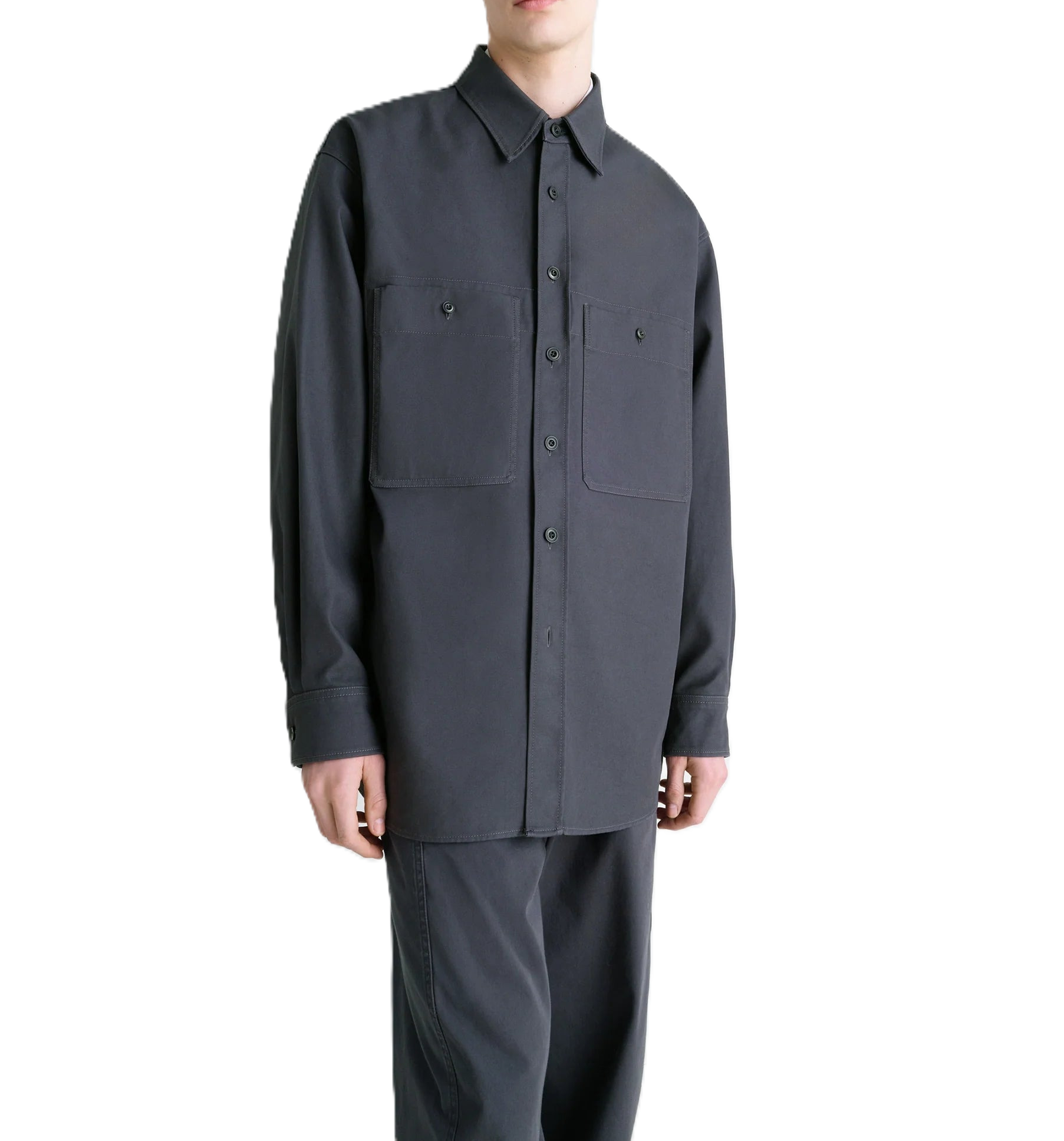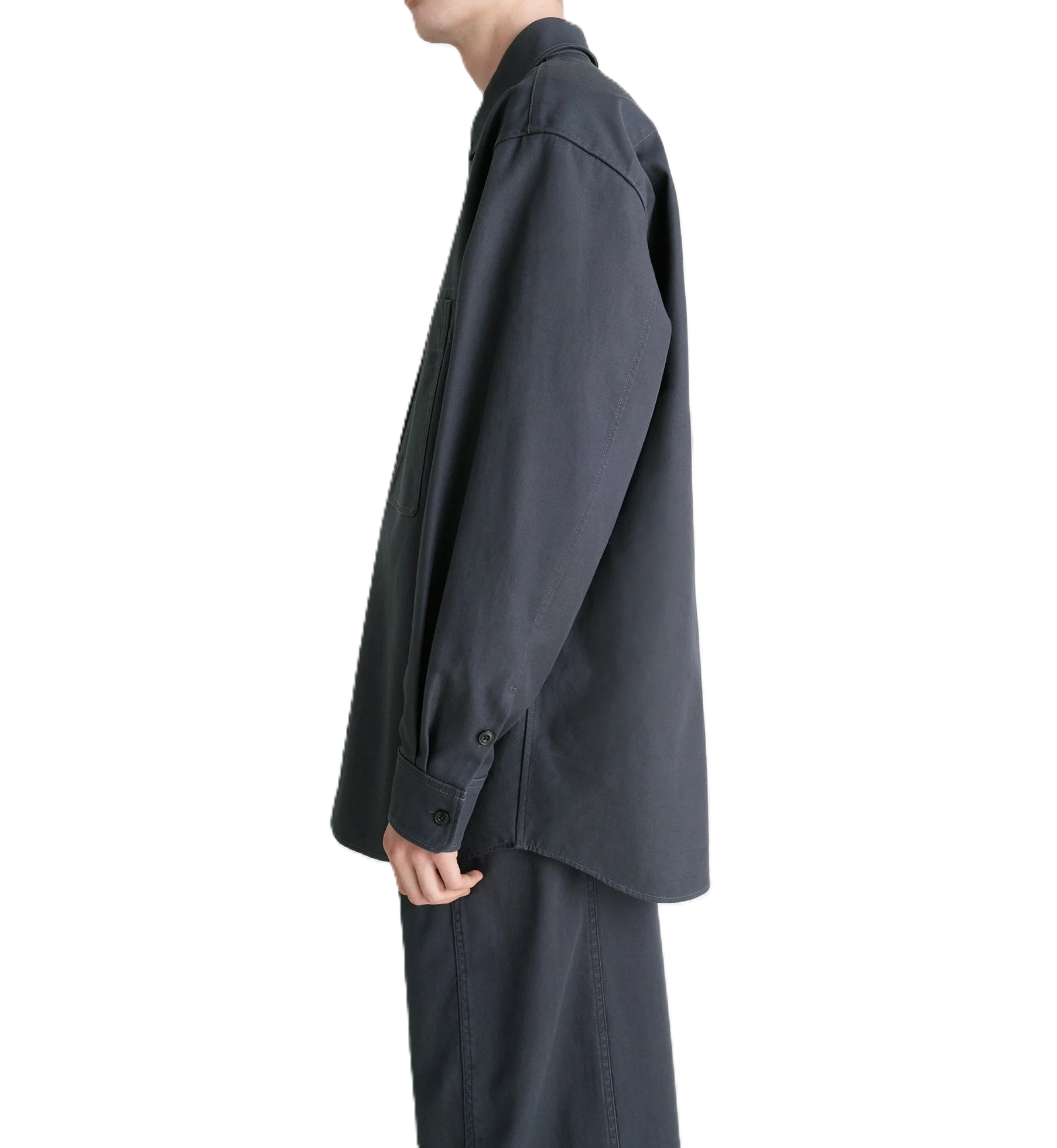 Ispirata al mondo dell'abbigliamento da lavoro, questa overshirt utility presenta tasche e impunture a contrasto. Realizzata in un twill di cotone spesso, un tessuto giapponese sottoposto a un trattamento di risciacquo per conferire morbidezza al capo. Il capo svilupperà una patina nel tempo.