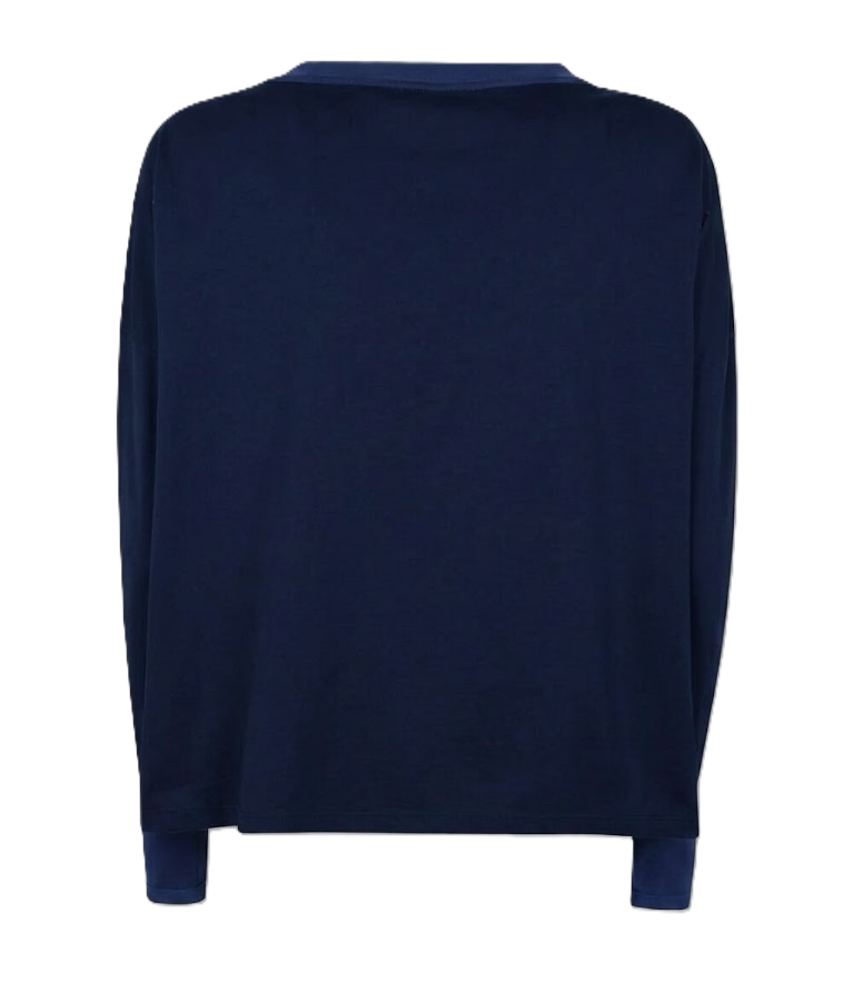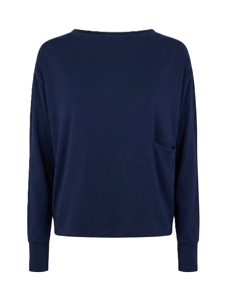 Maglia girocollo color blu navy, in cotone, maniche lunghe, taschino sul petto