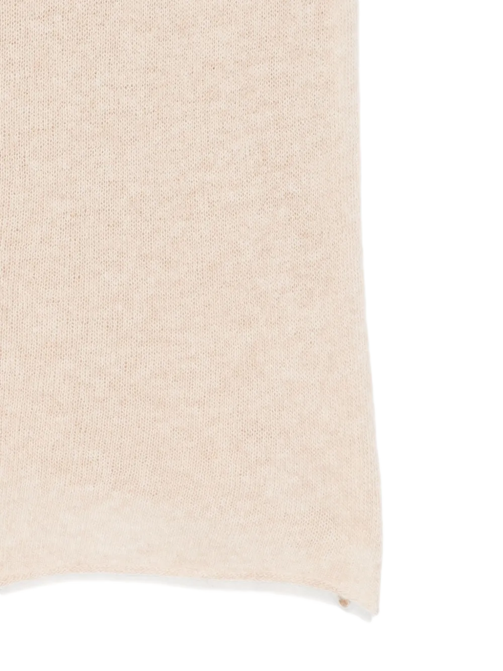 Sciarpa con logo applicato beige, lavorazione a maglia, forma rettangolare, stile avvolgente
