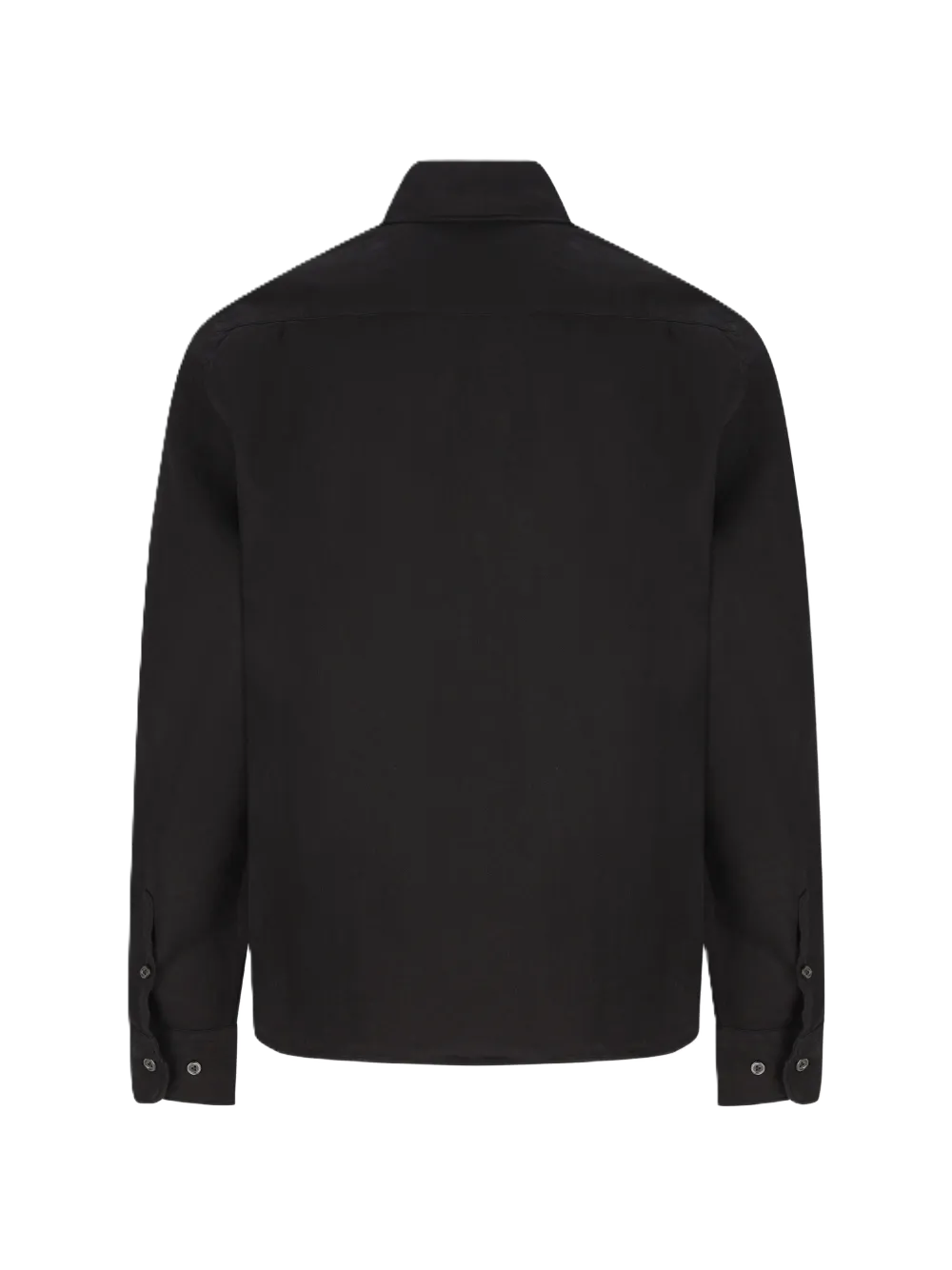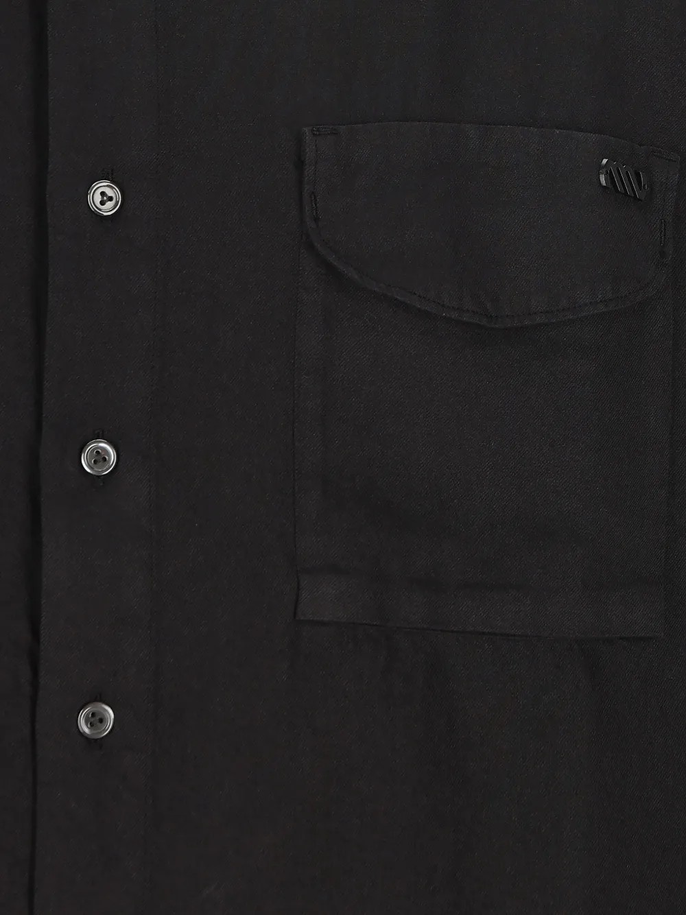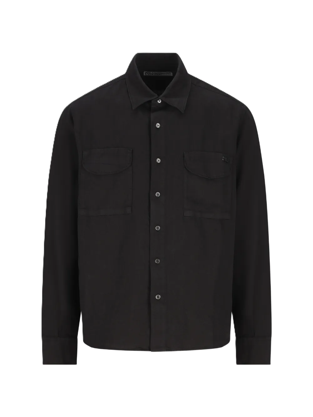 Camicia color nero, abbottonatura classica, due tasche frontali sul petto con patta, dettaglio logo.