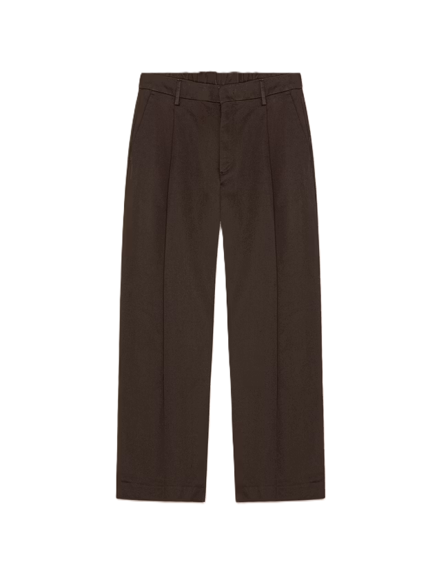 Pantaloni a pieghe dalla vestibilità comoda, realizzati in morbido cotone biologico con una finitura satinata lucida. Doppie pieghe sul davanti e chiusura con gancio e barretta, per una vestibilità morbida ma al tempo stesso fresca al tatto.