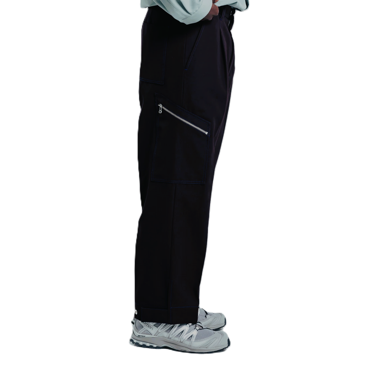 pantaloni larghi a gamba dritta, pieghe stirate davanti e dietro, tasche anteriori