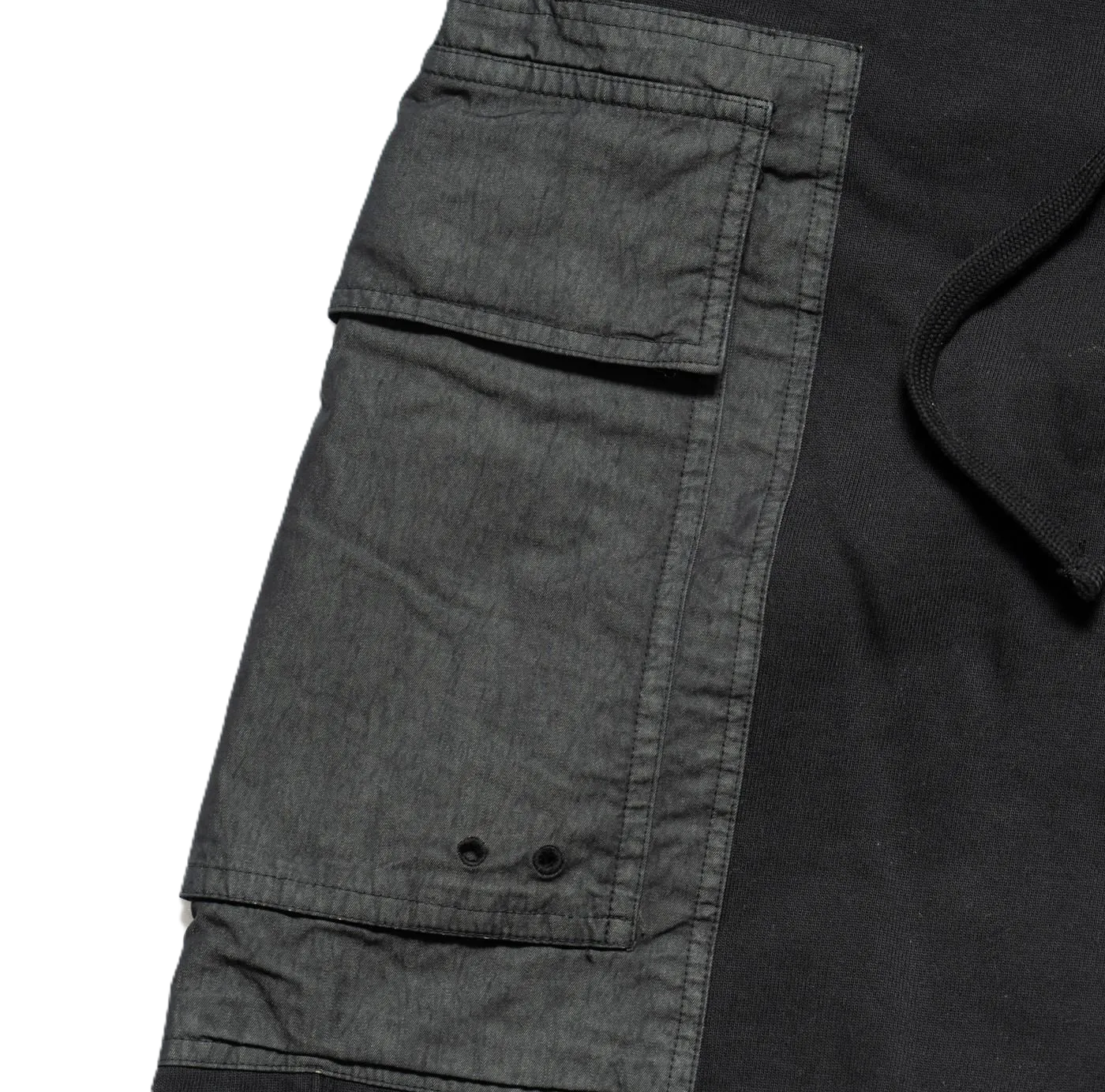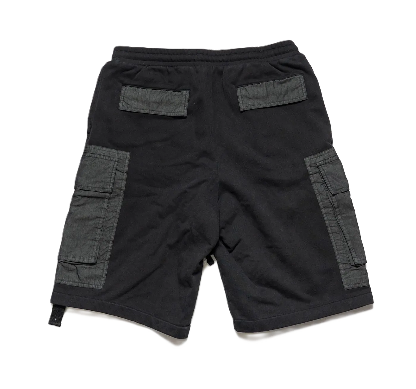 Pantaloncini sportivi con tasche cargo. Le tasche sono realizzate in un tessuto diverso.