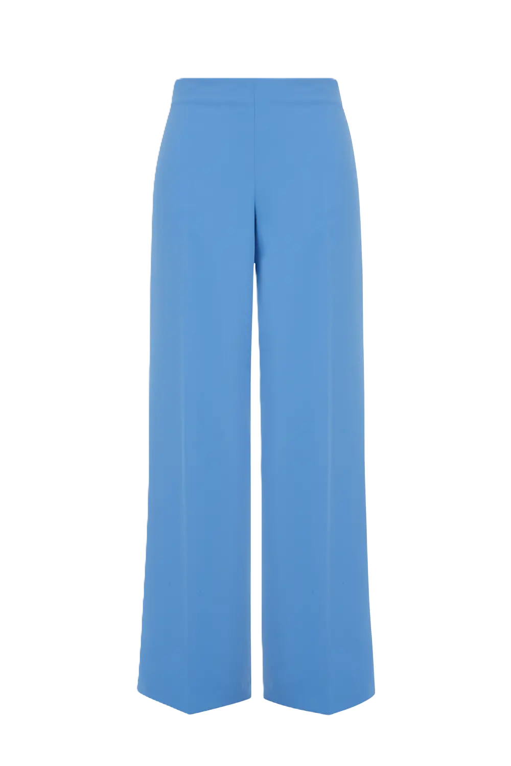 Pantaloni Panty blu cielo, chiusura laterale con zip e gancio nascosta, dettagli con pince, piega stirata.