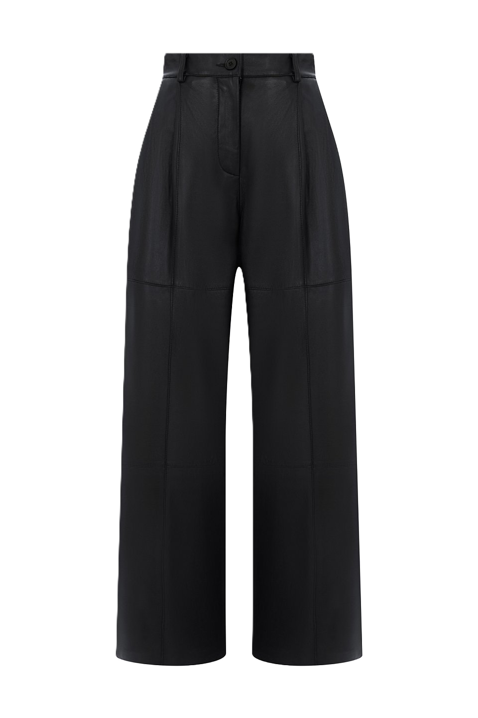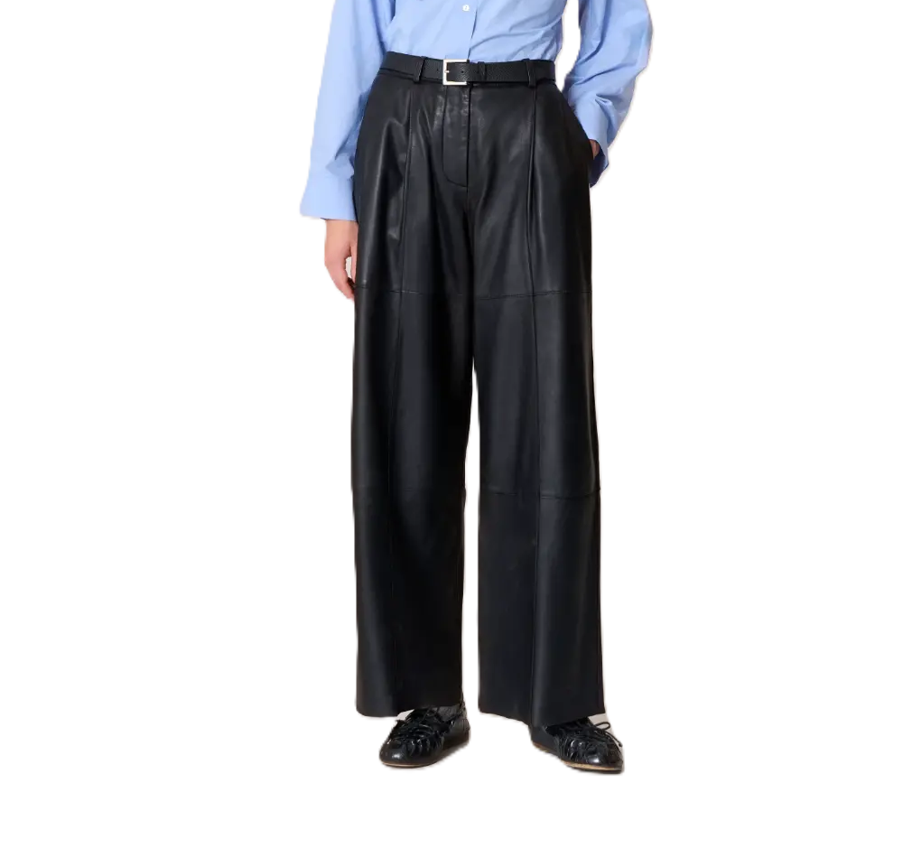 Pantalone gamba larga in pelle con tasche, chiusura con bottone. lunghezza 107 cm. 100% lamb leather