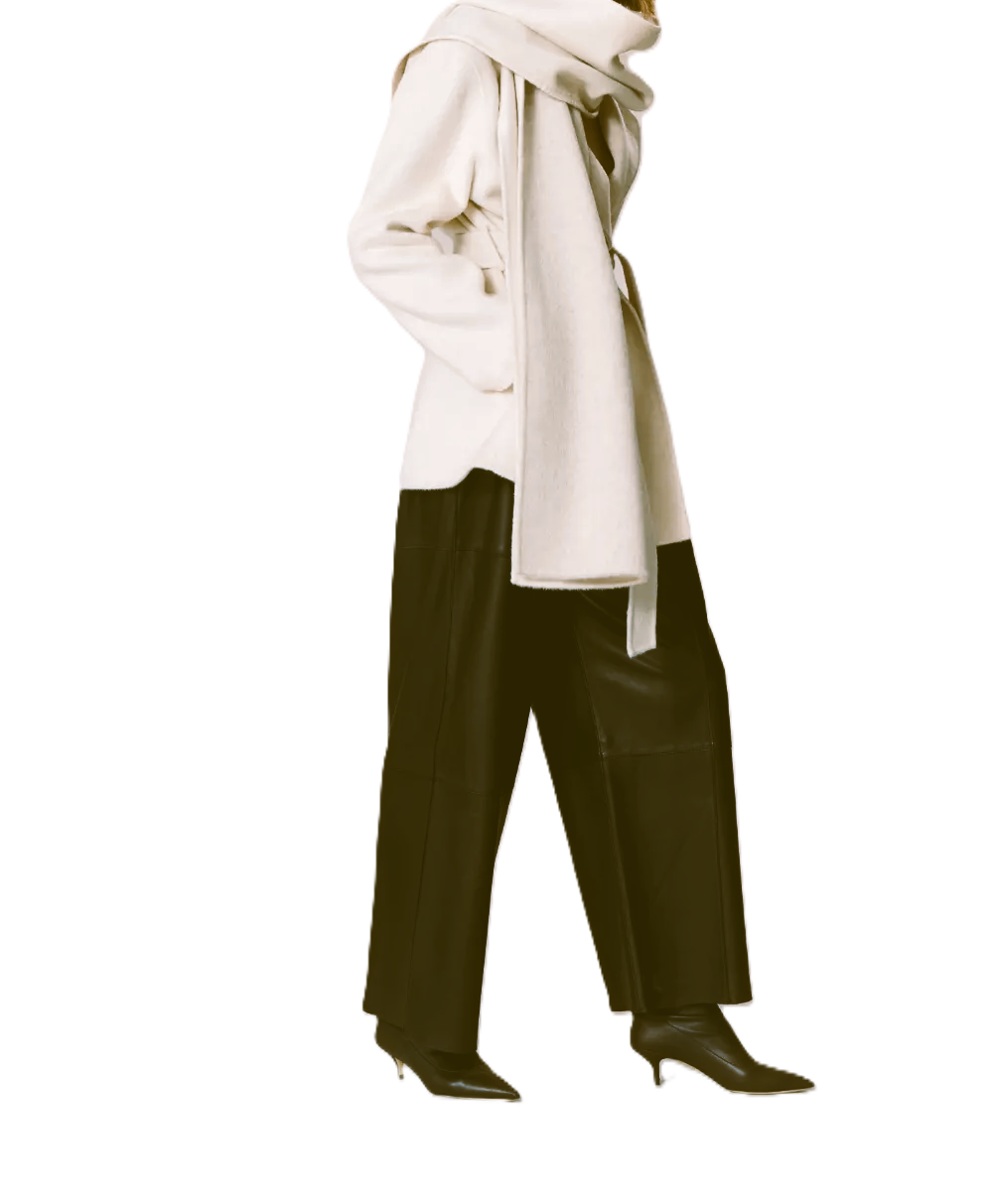 Pantalone gamba larga in pelle con tasche, chiusura con bottone. lunghezza 107 cm. 100% lamb leather