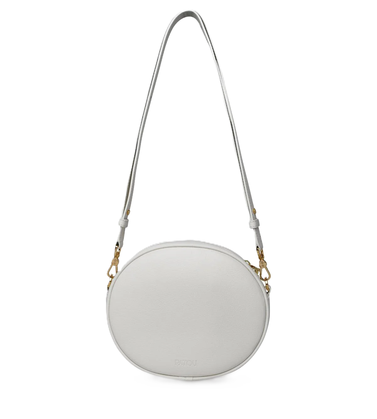 Borsa ovale con logo JP sul davanti, tracolla regolabile e rimovibile, logo "patou" in rilievo sul retro, chiusura superiore con cerniera, tasca interna a fessura. N21,5 x 18 x 6 cm