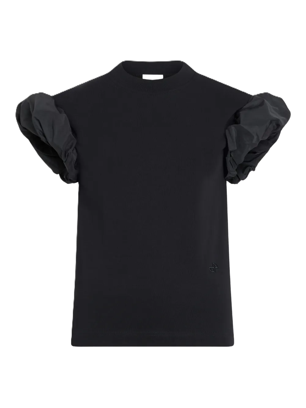 T-shirt con maniche in faille, color nero, girocollo, maniche corte, ricamo con logo