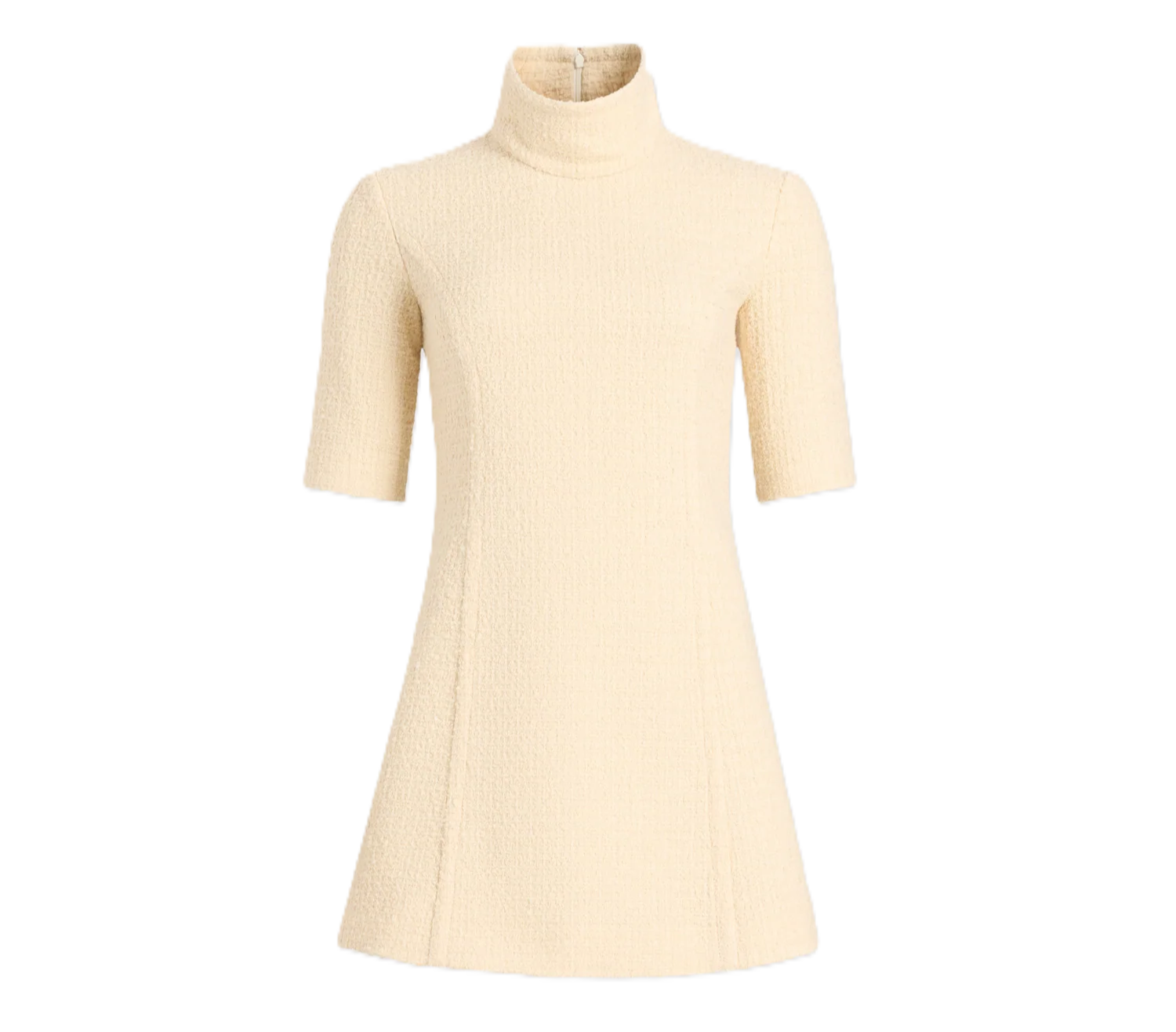 Vestito mini a collo alto in tweed di misto lana sostenibile