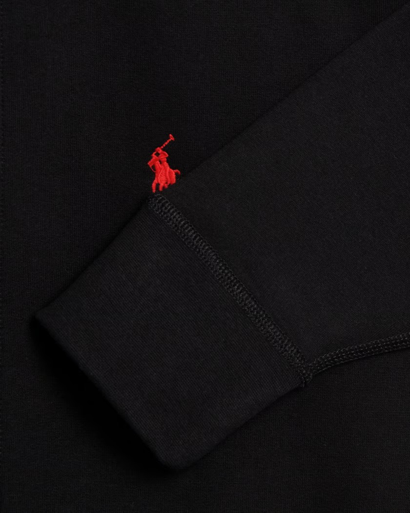 Felpa uomo regular, in felpa di misto cotone nero, con cappuccio, chiusura con zip e ricamo iconico Polo Ralph Lauren sul fronte.
