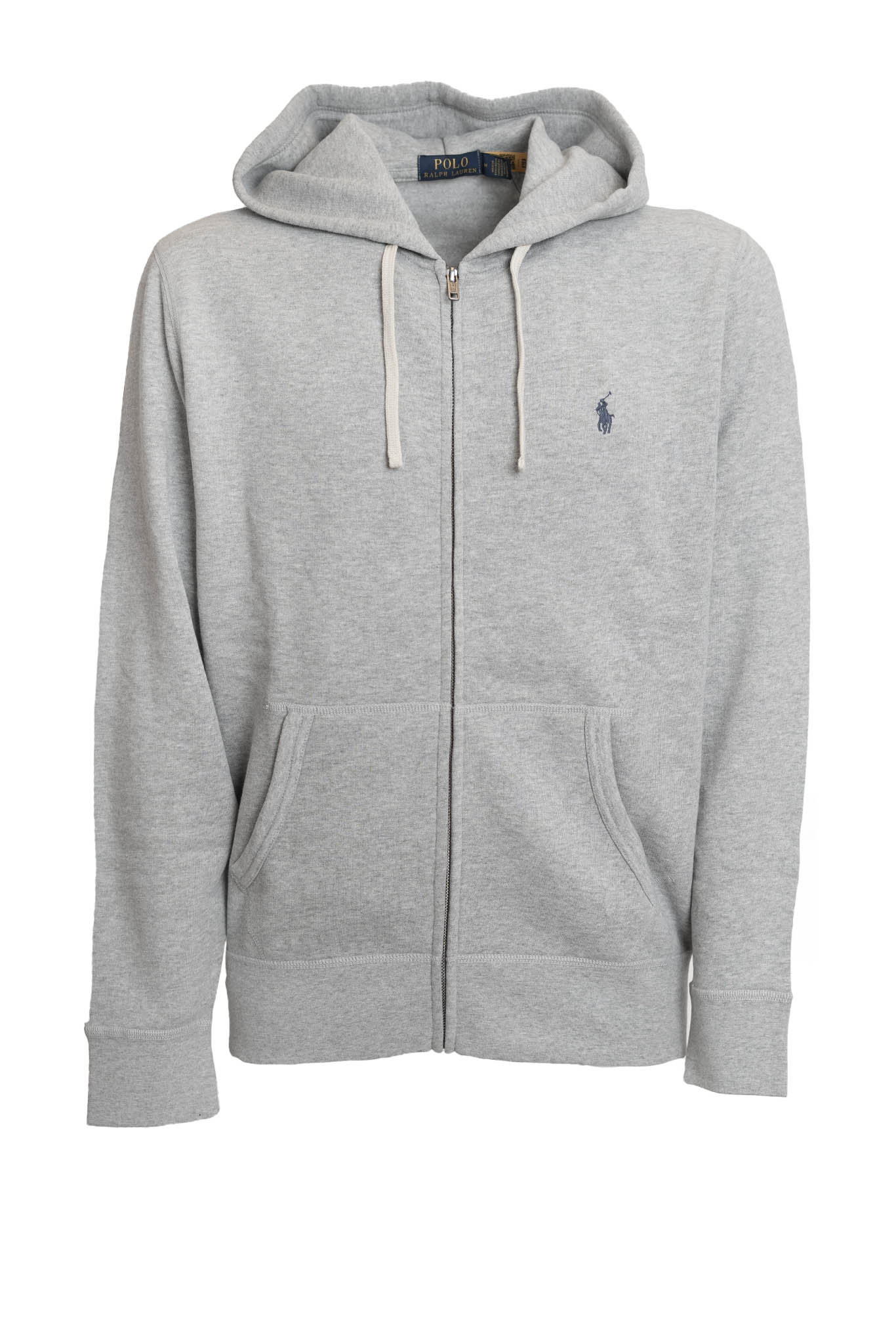 Felpa reg fit, chiusura con zip e cappuccio regolabile.