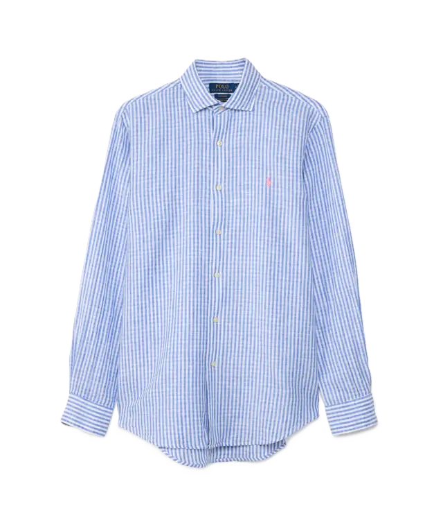 Camicia a righe Celeste e bianco, logo Pony polo a contrasto