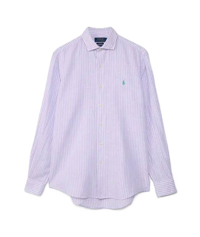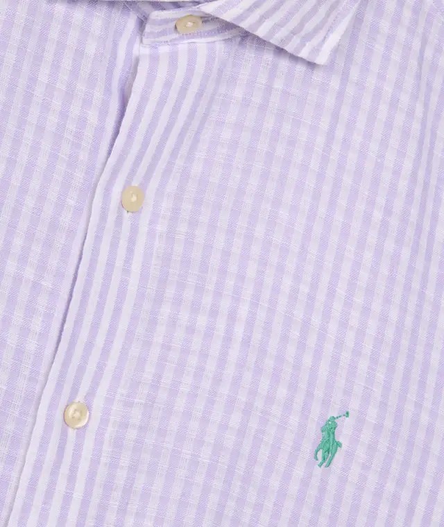 Camicia a righe lavanda e bianco, logo Pony polo a contrasto