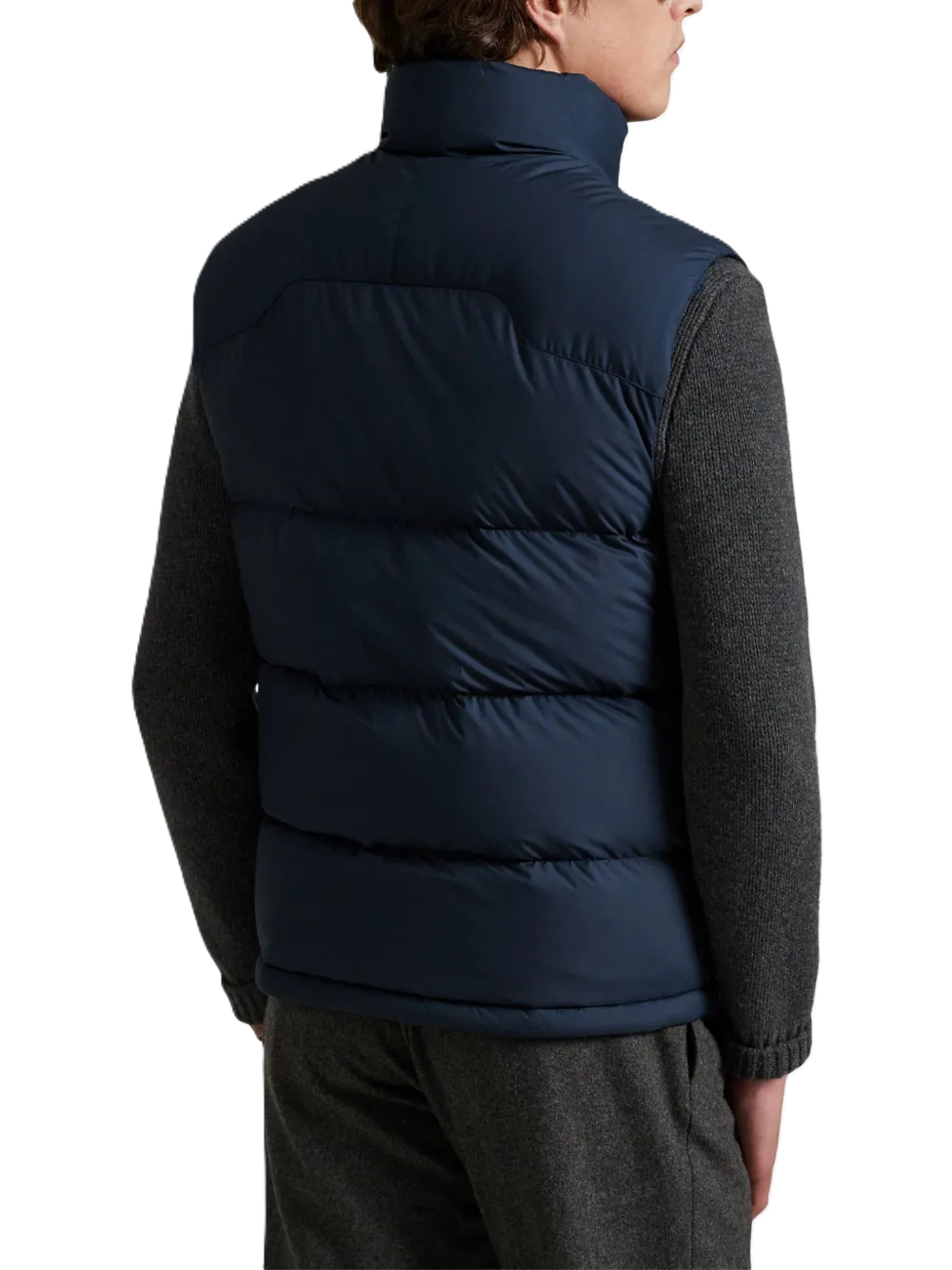 Gilet imbottito The Gorham a collo alto blu navy, chiusura con zip, tasche frontali, logo Polo Pony, collo alto