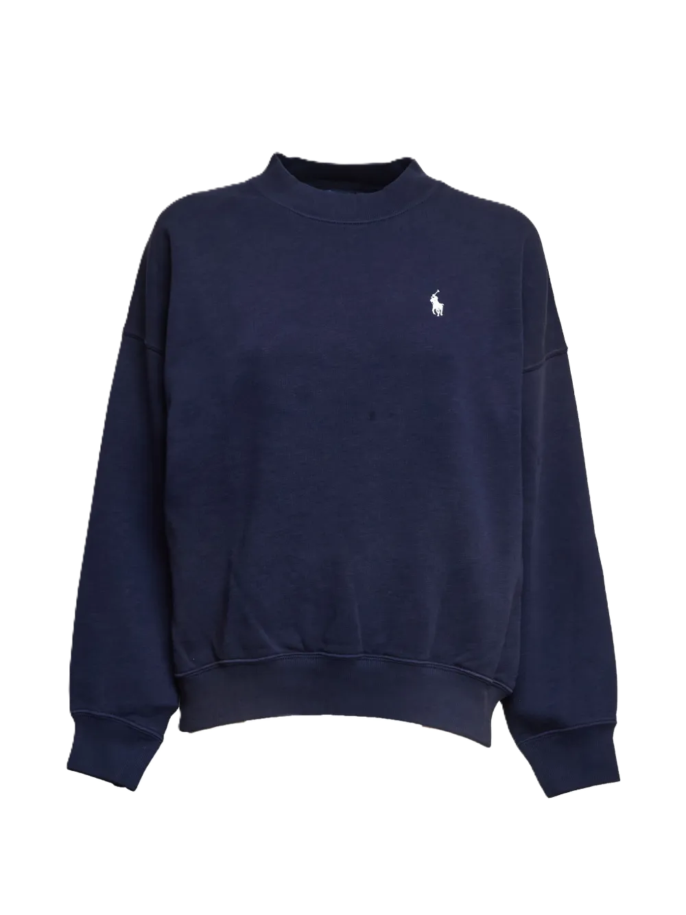 Felpa blu navy, orlo a coste, girocollo, logo sul petto