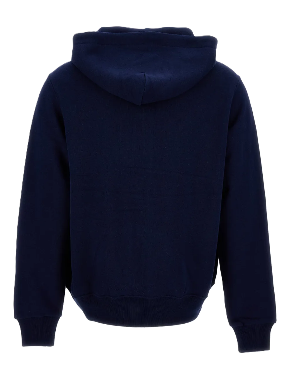 Felpa color blu, logo ricamato, coulisse, chiusura frontale con zip, misto cotone, cappuccio
