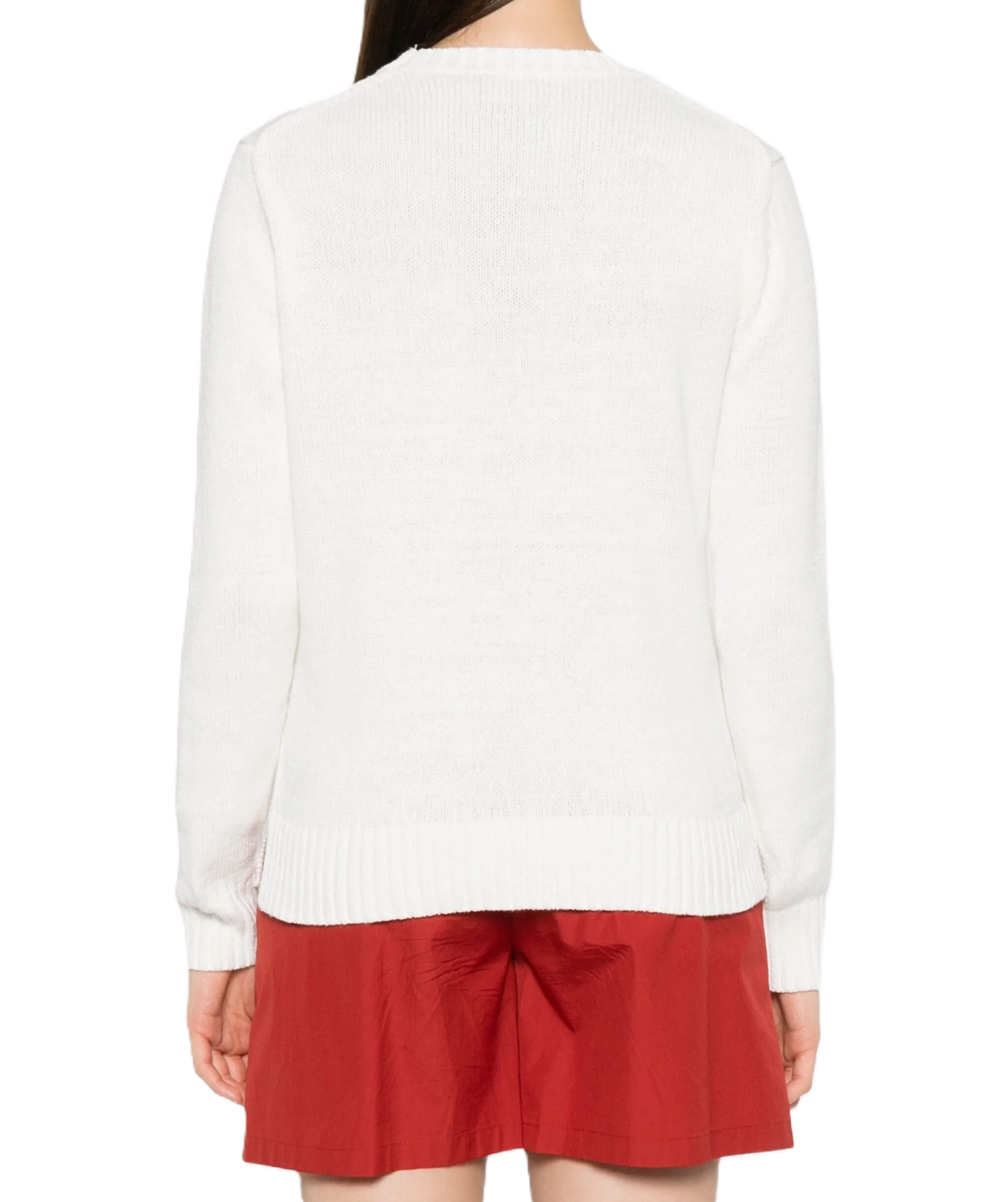 maglione ricamato con orso bianco, maniche lunghe, girocollo, finiture a coste