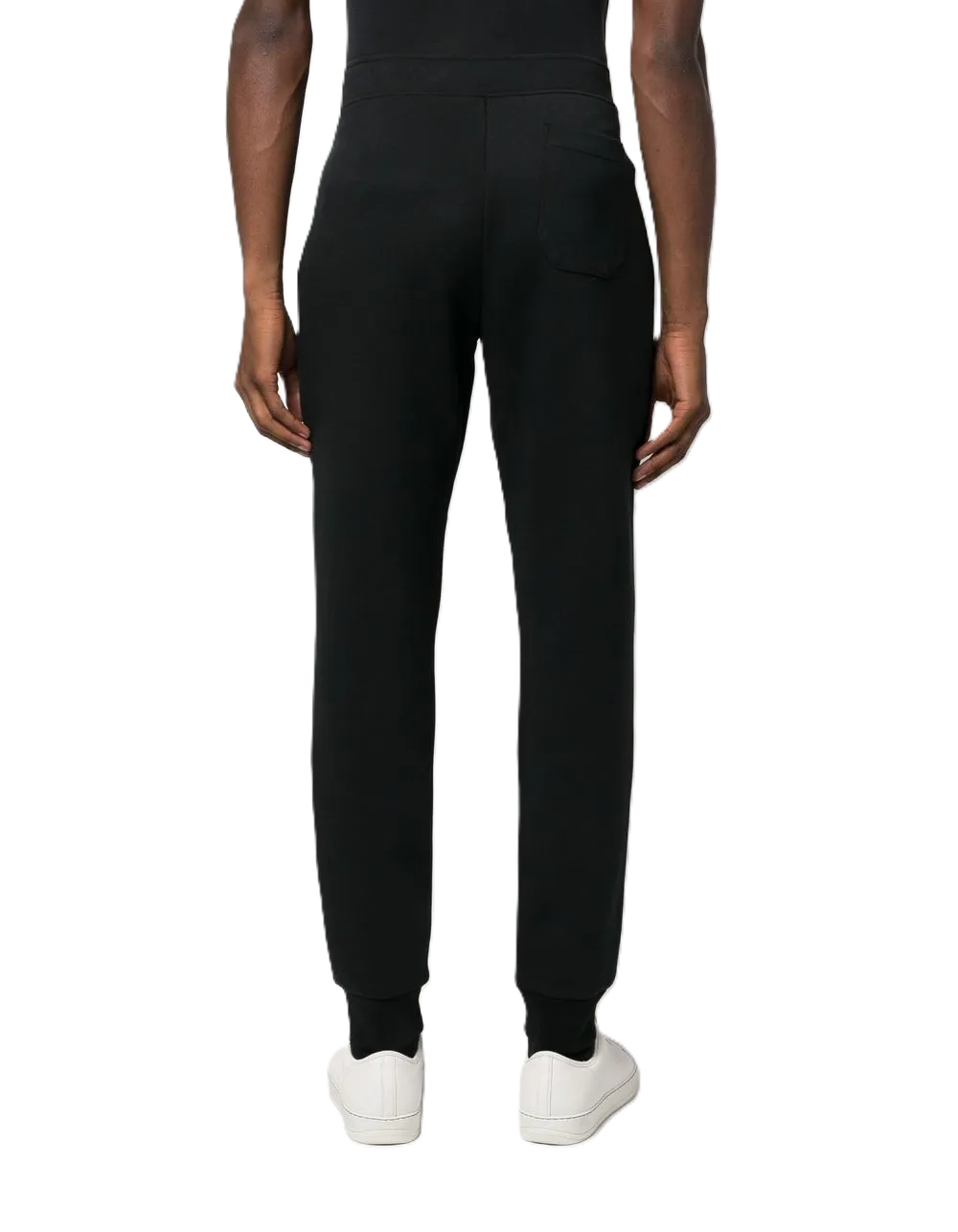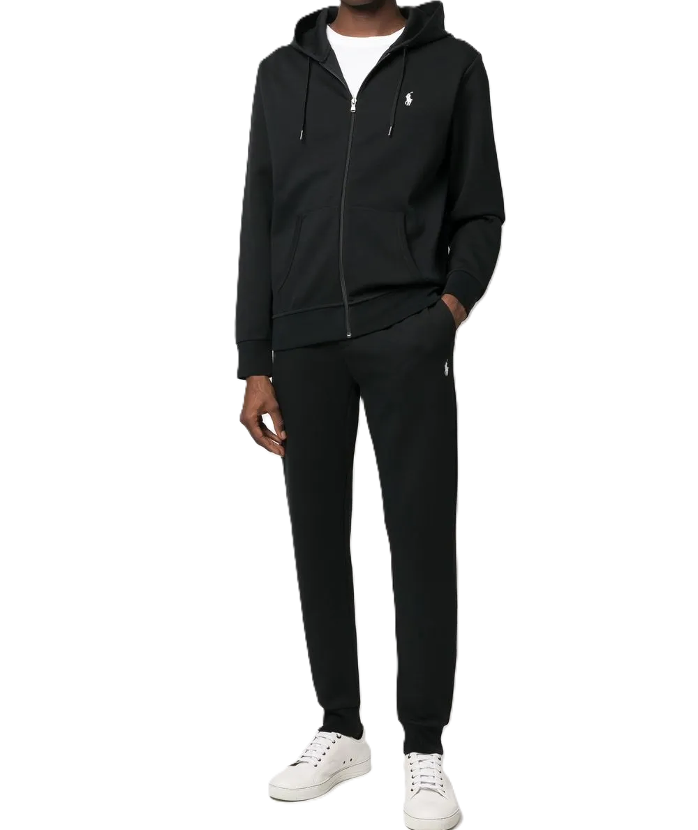 Nero intenso, misto cotone, caratteristico motivo Polo Pony, vita elasticizzata, chiusura a coulisse, due tasche diagonali laterali e polsini elasticizzati.