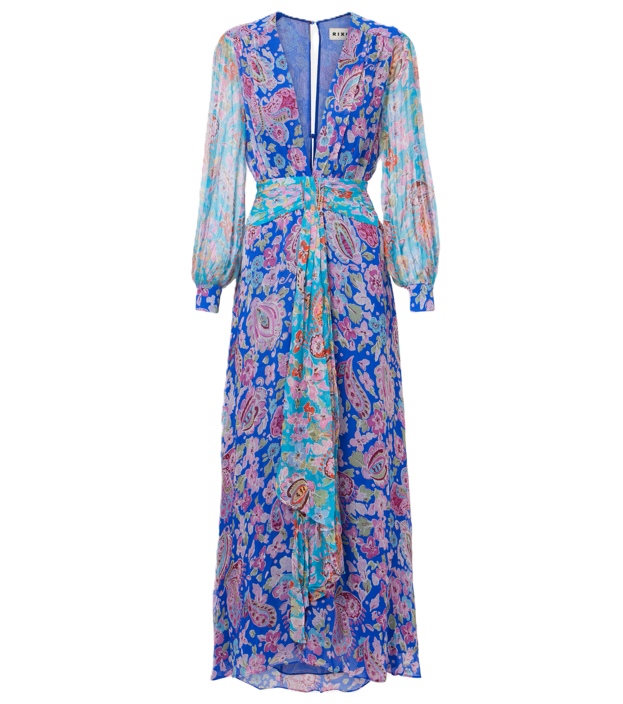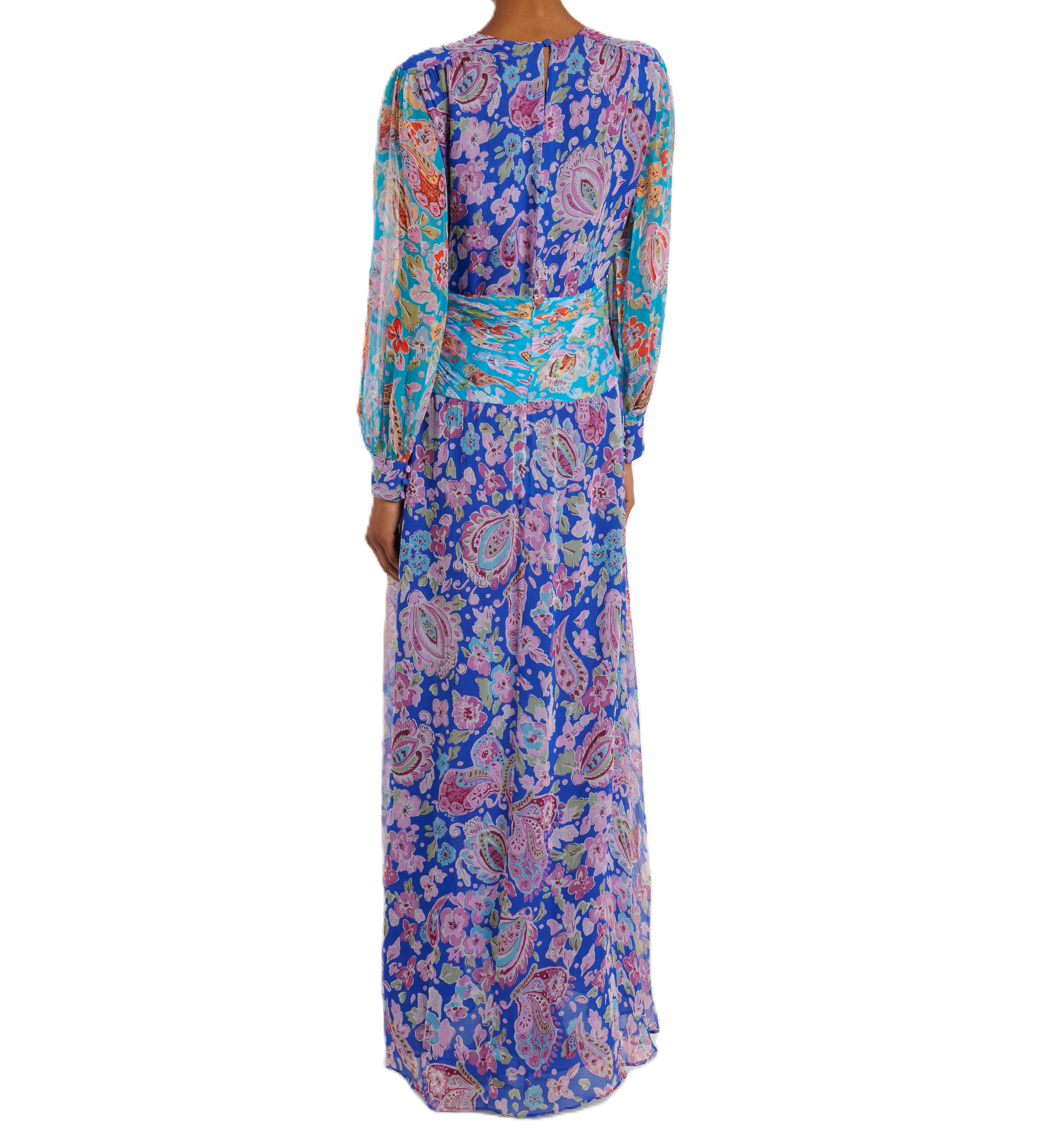 Maxi abito Meera in chiffon stropicciato è impreziosito da vivaci motivi floreali all-over e presenta ampie maniche a sbuffo e un punto vita arricciato ben definito.
