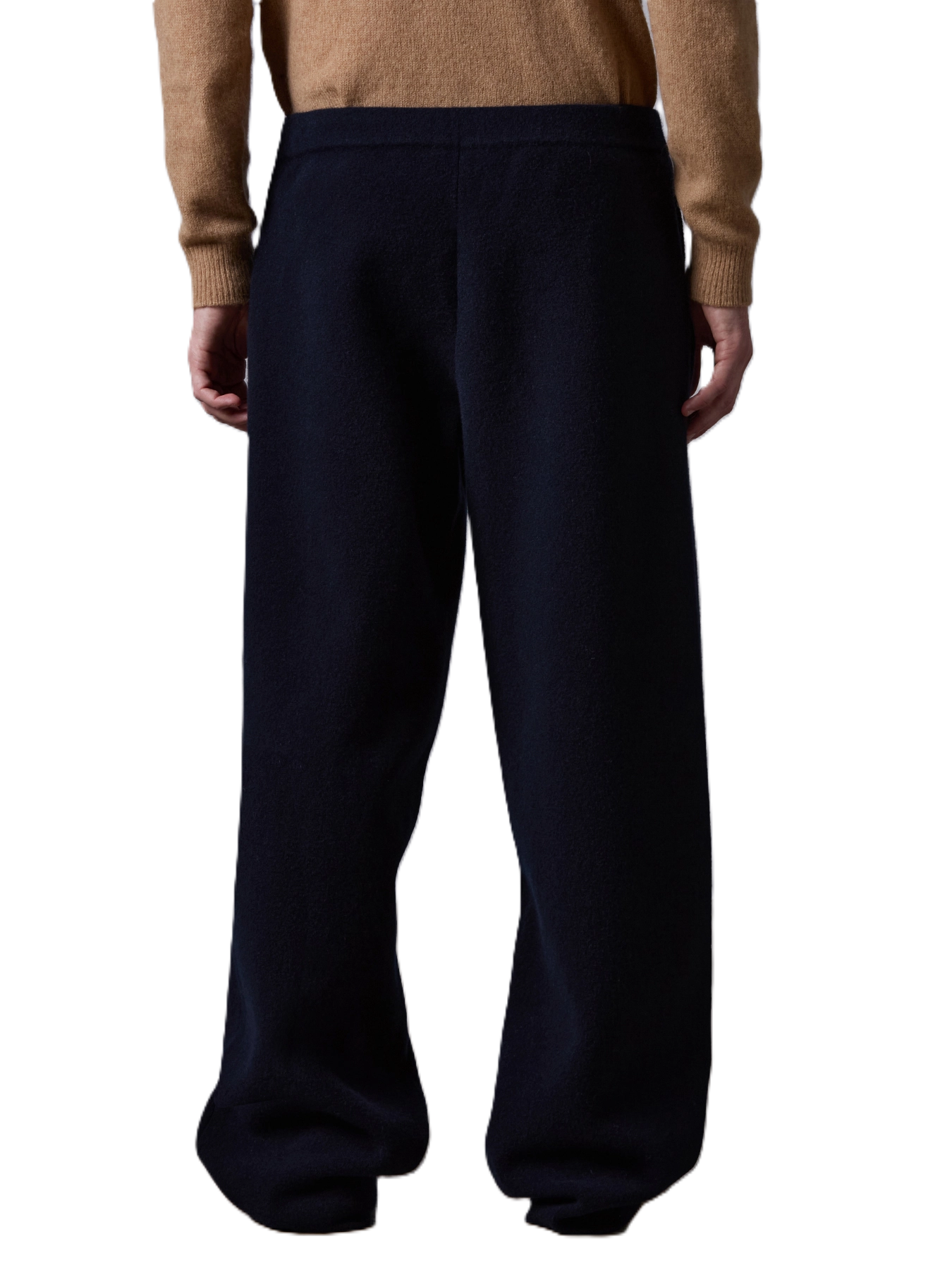 Pantalone in maglia realizzato in morbida lana dall'effetto infeltrito al tatto. Il capo è rifinito da una coulisse in vita per regolarne l'allacciatura, tasche laterali e gambe ampie. -Vestibilità comoda -Coulisse in vita -Gamba ampia. Vestibilità comoda.