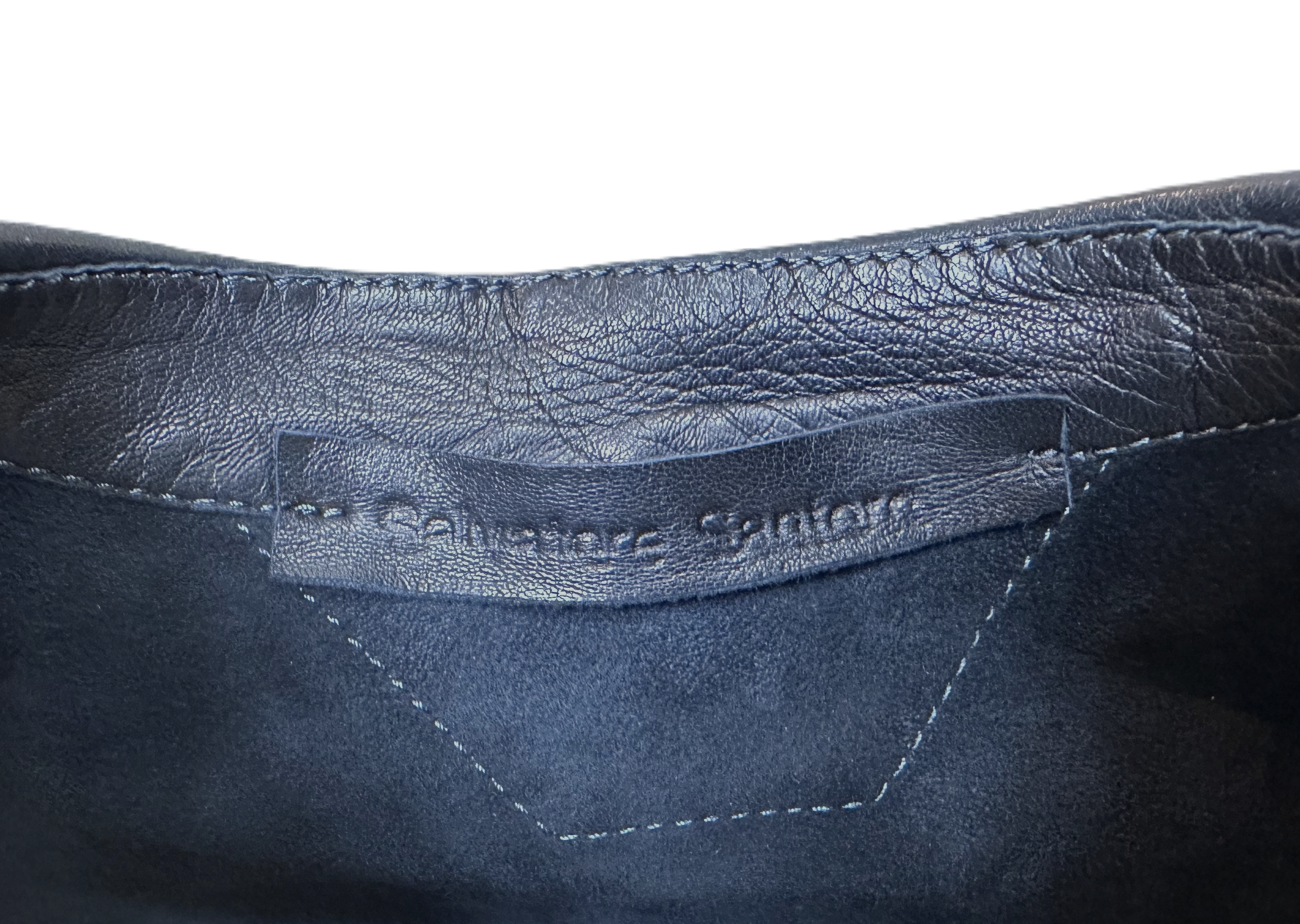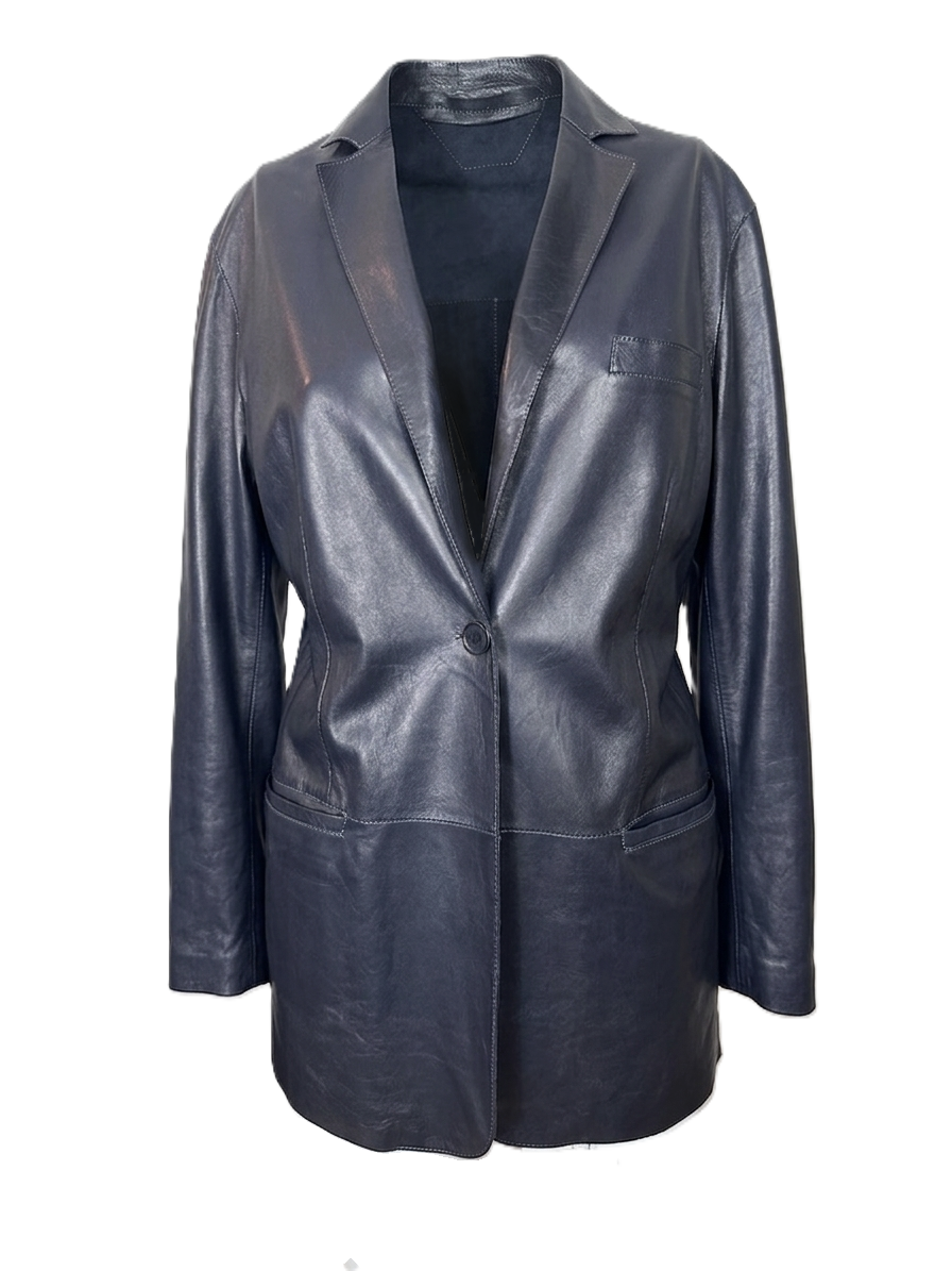 Giacca lunga, dal taglio morbido, in pelle blu