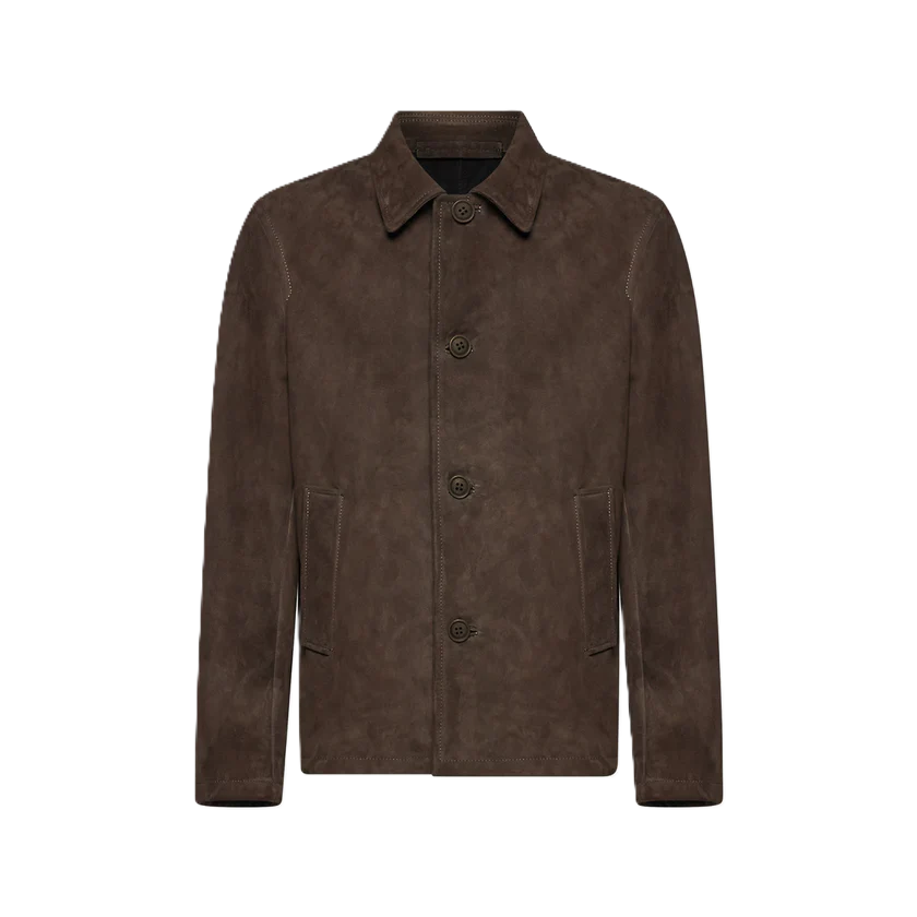 Giacca da uomo in suede marrone scuro, realizzata artigianalmente in Italia, simbolo di eleganza sobria e versatilità. La morbidezza del suede esalta il comfort e dona al capo un aspetto raffinato e contemporaneo, perfetto sia per occasioni formali sia per look casual di carattere. Il design pulito, con colletto classico e chiusura frontale a bottoni, sottolinea uno stile minimal e senza tempo. Le tasche laterali a filo aggiungono funzionalità senza appesantire la silhouette, mentre le cuciture tono su tono e la linea regolare valorizzano la vestibilità naturale. Perfetta per la mezza stagione, questa giacca si abbina facilmente a pantaloni sartoriali, denim o maglieria fine, accompagnando ogni outfit con discrezione e personalità. Un must-have per chi apprezza i capi essenziali, curati nei dettagli e fedeli allo stile autentico del vero Made in Italy.