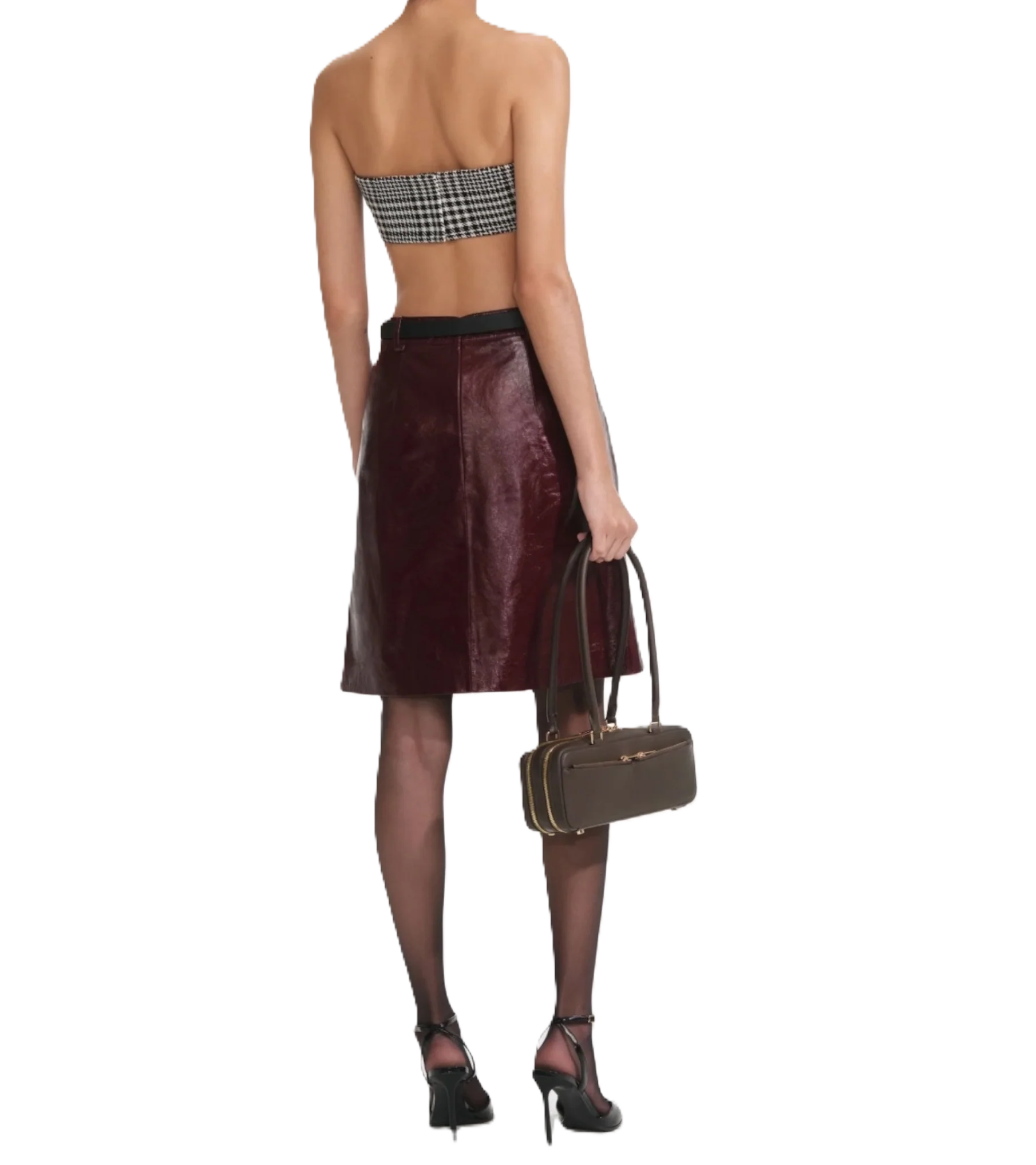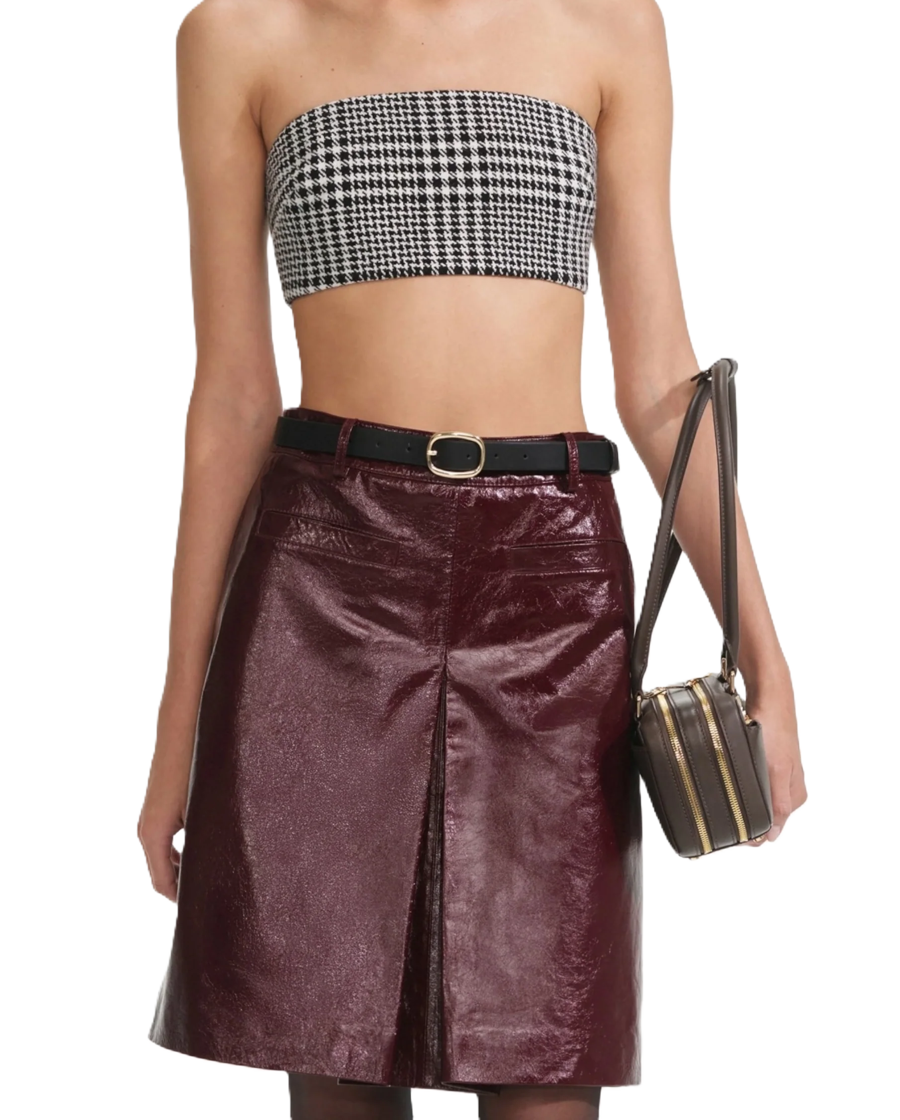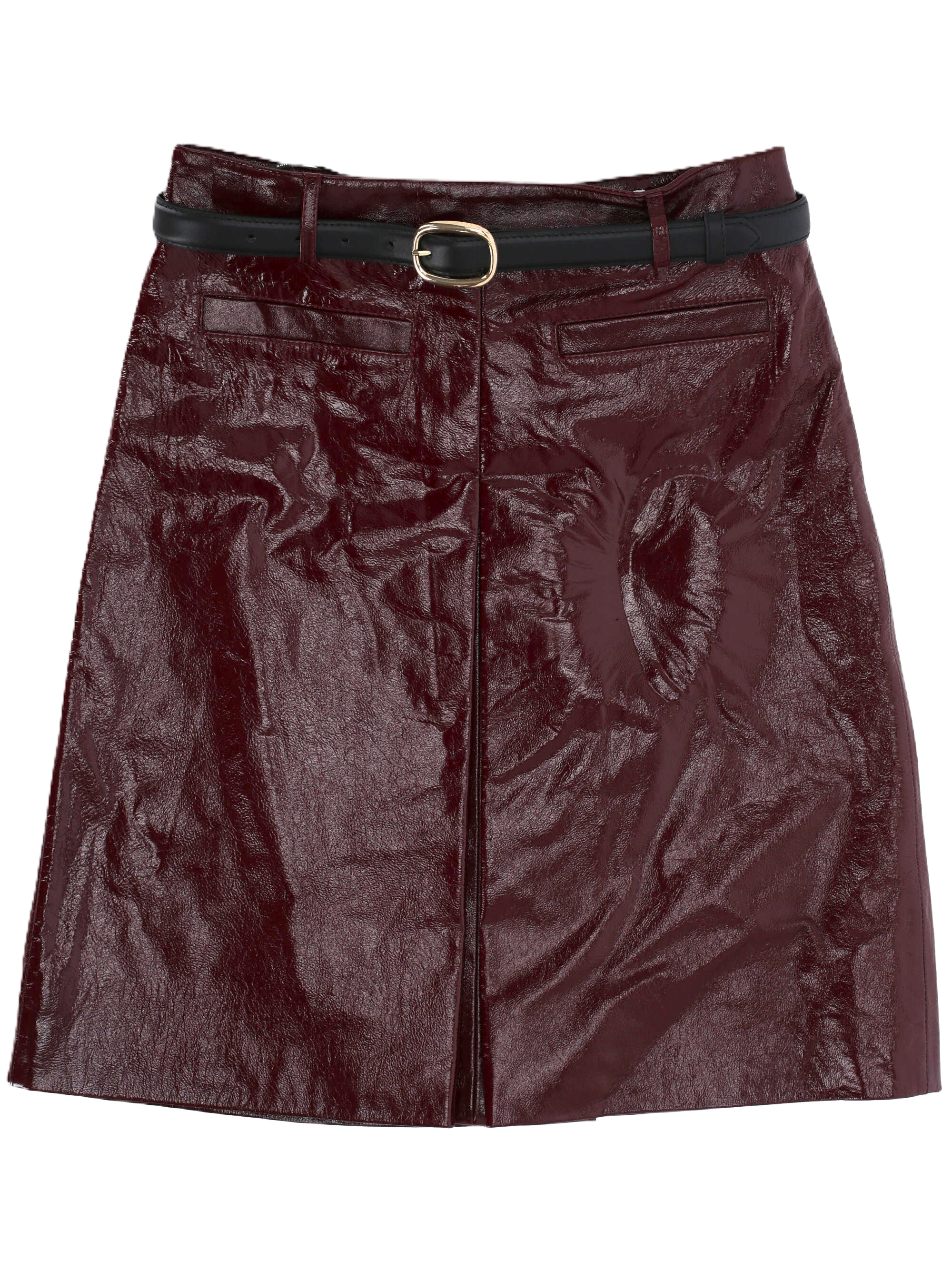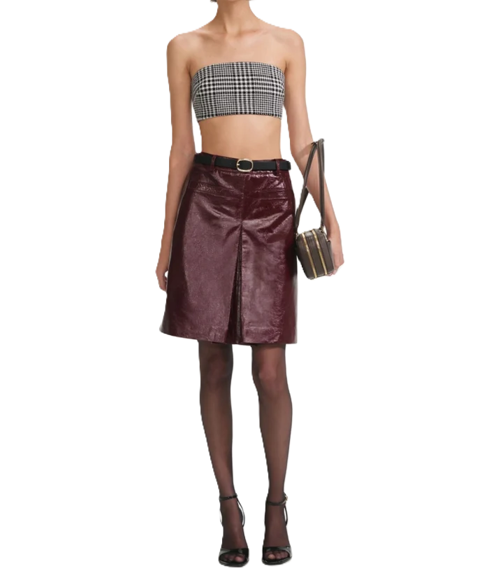 La pelle bordeaux dona un tocco cool a questa gonna midi aderente. Con cintura per stringere la vita, indossala con una camicia abbottonata di giorno e con la giacca coordinata per un drink dopo il lavoro.