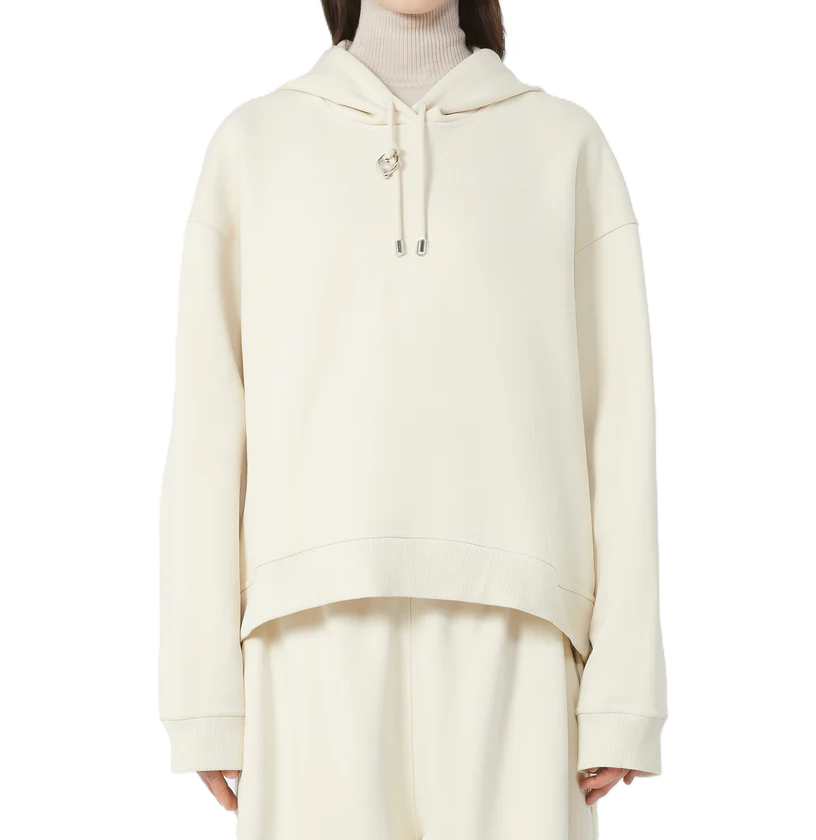 Felpa in jersey felpa di misto cotone stretch con cappuccio foderato in jersey. Fit regolare e morbido sul busto. Modello con cappuccio e coulisse con finalini metallici personalizzati. Polsi e fondo capo rifiniti con costine. Logo gommato all'interno del polsino. Cappuccio foderato in jersey.