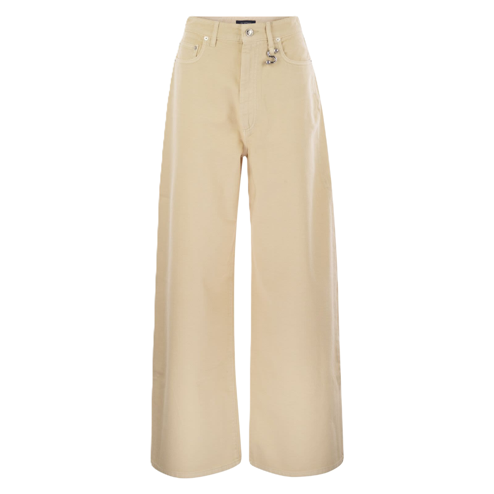 Pantaloni ampi e morbidi a 5 tasche in bull di cotone tinto in capo. Il volume della gamba e le cuciture in tinta aggiungono una nota iconica al design.