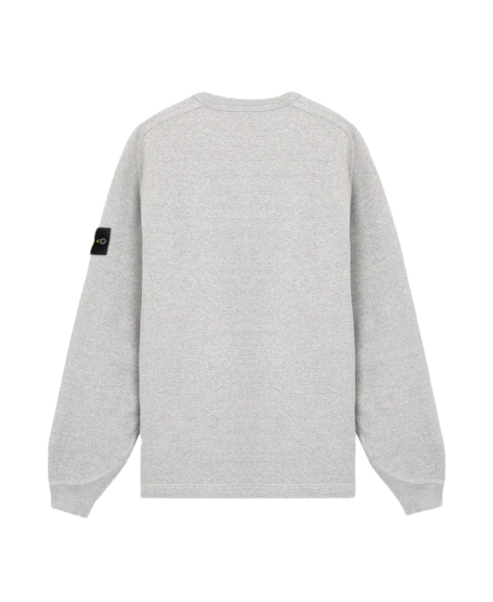 Felpa girocollo grigio melange, toppa sulla manica, maniche lunghe, orlo a coste polsini a coste