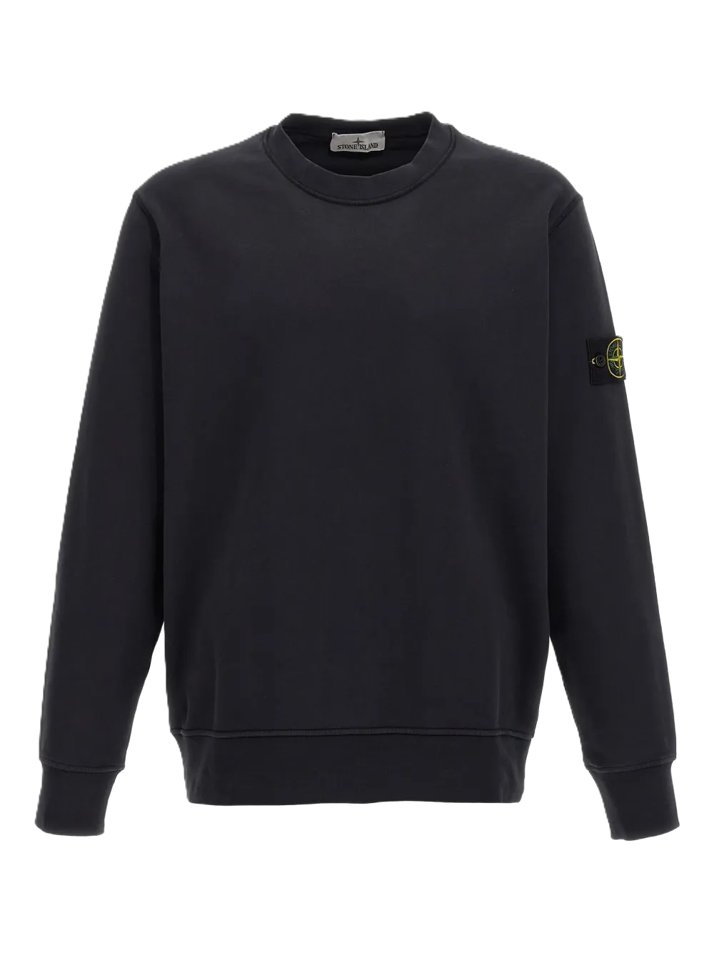 Felpa girocollo con applicazione nero in cotone spazzolato, maniche lunghe, polsini, applicazione con logo
