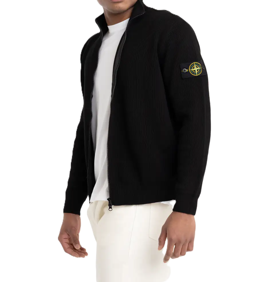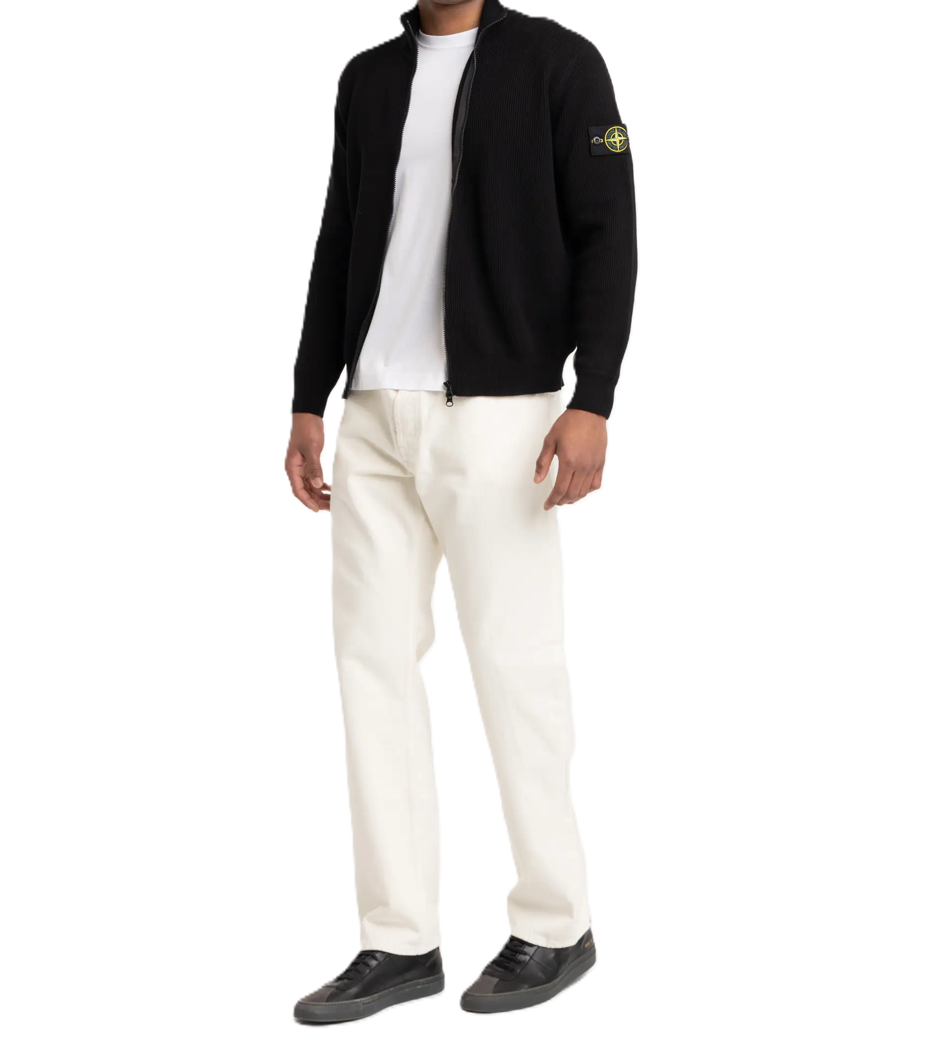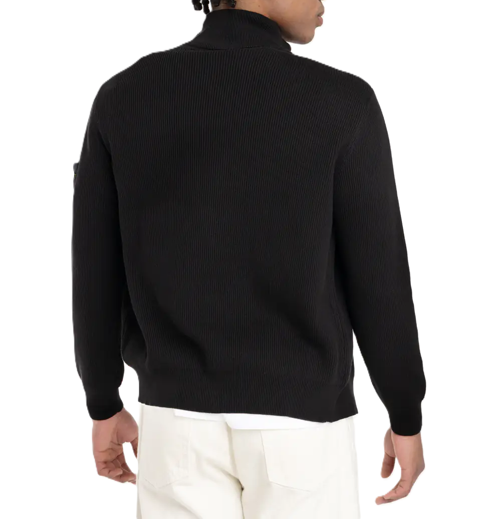Maglione a coste in morbido cotone biologico, vestibilità regolare, con cerniera.