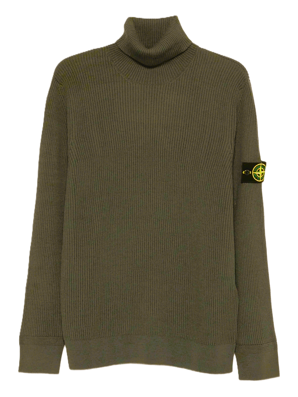 Maglione military trama a coste, collo alto, maniche lunghe, vestibilità regolare, applicazione con logo