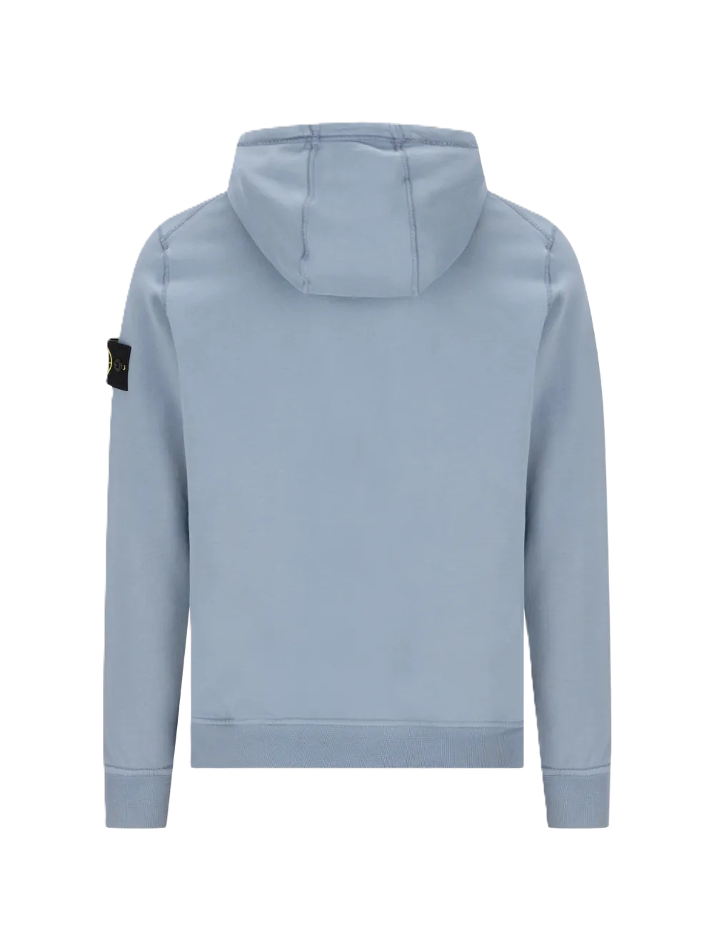 Felpa color avio con applicazione, chiusura con zip, cappuccio, tasca a filetto frontale