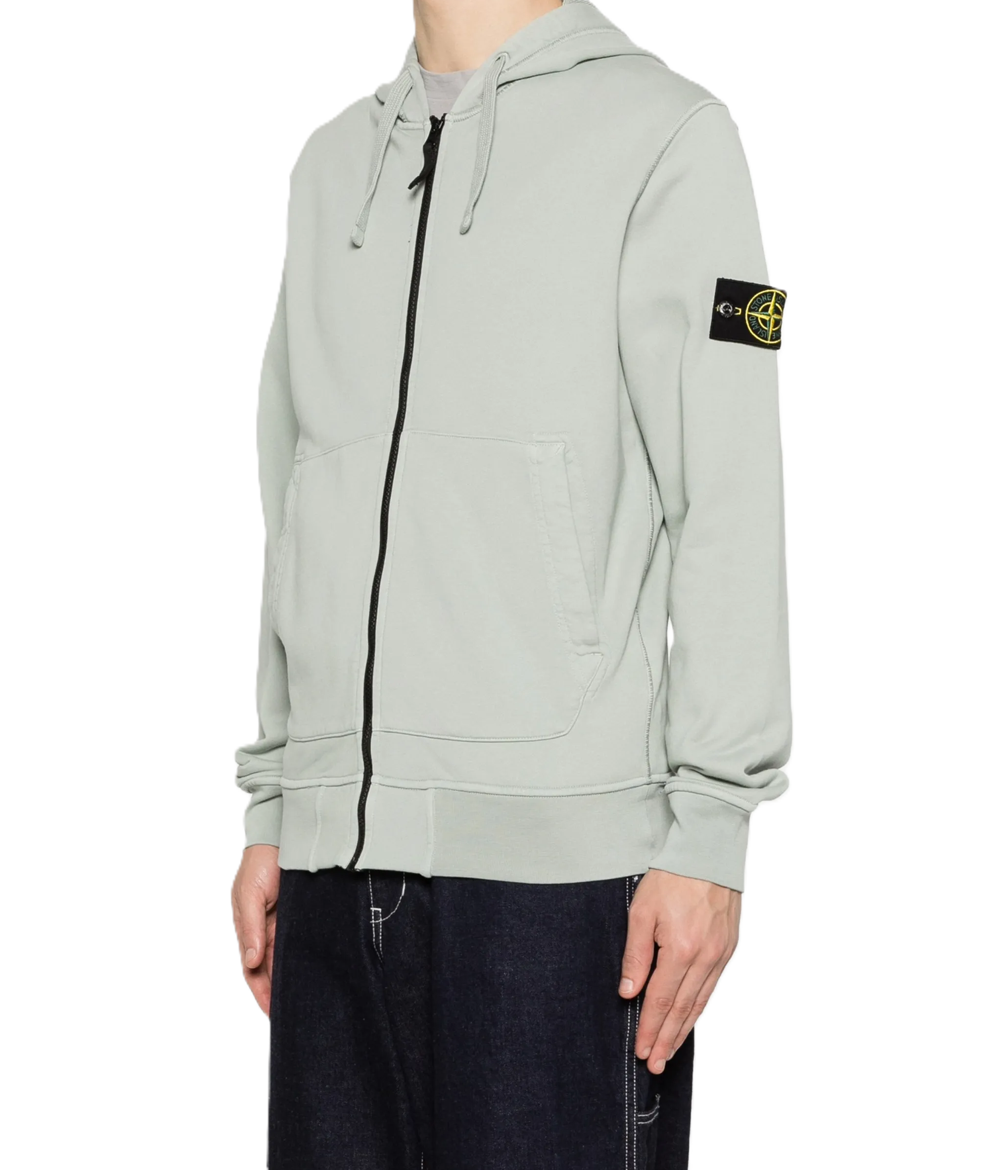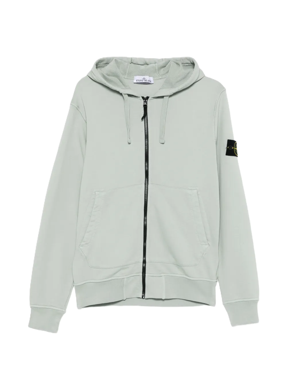 Stone IslandFelpa in cotone con zip e cappuccio verde