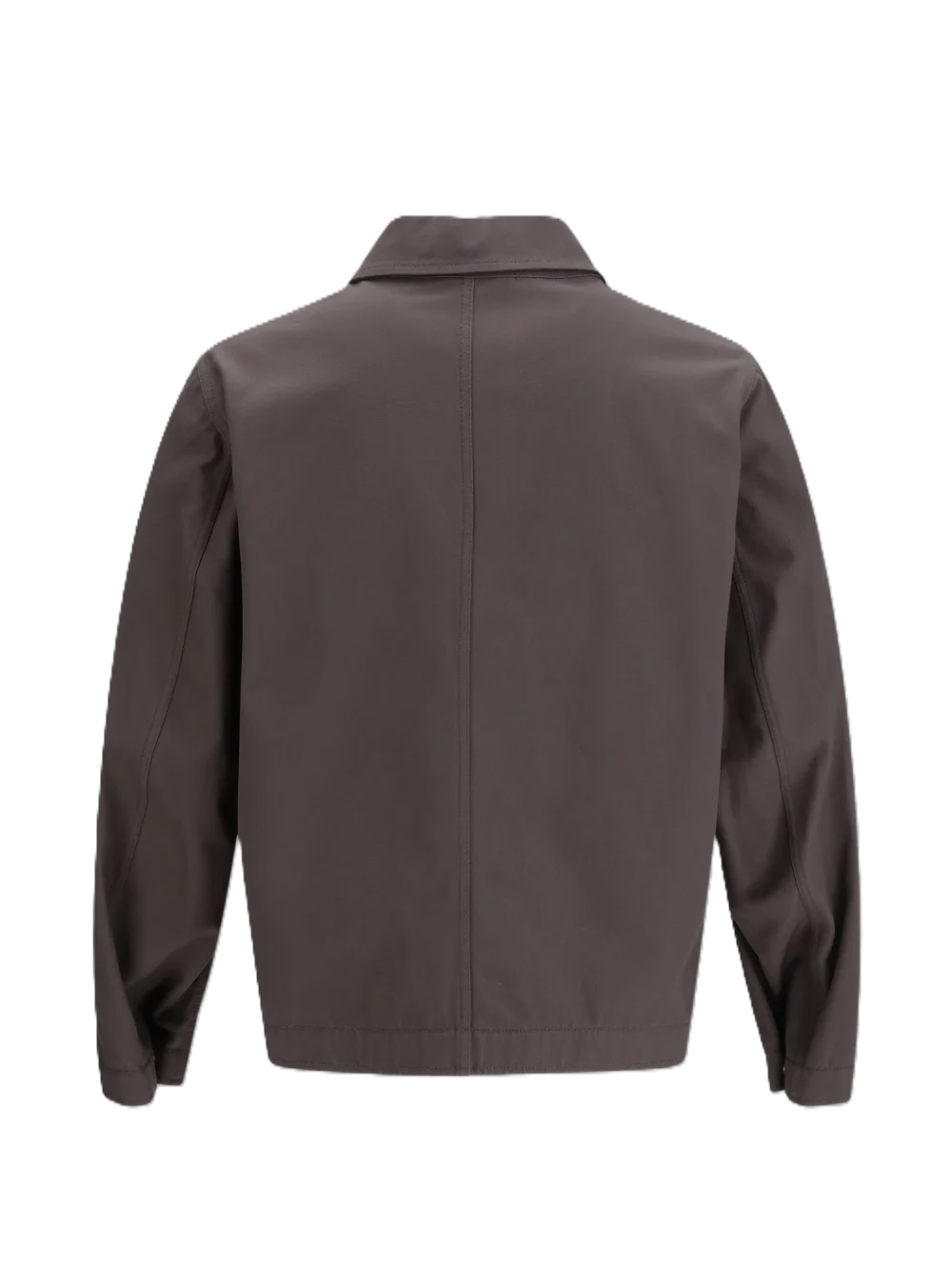 Giacca color grigio, chiusura a bottoni, maniche lunghe, tasche sul petto, vestibilità regolare