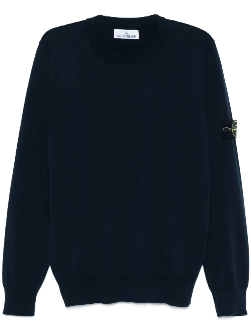 Maglione blu navy orlo e polsini a coste, caratteristica applicazione Compass removibile
