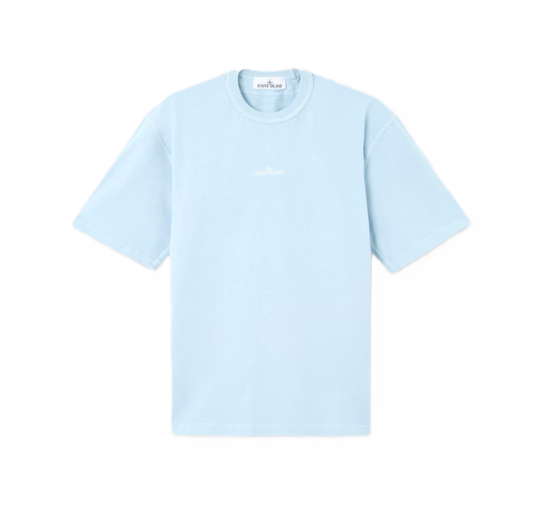 T-shirt a manica corta in jersey di cotone biologico pettinato con logo Stone Island ricamato sul petto. Modello tinto in capo.