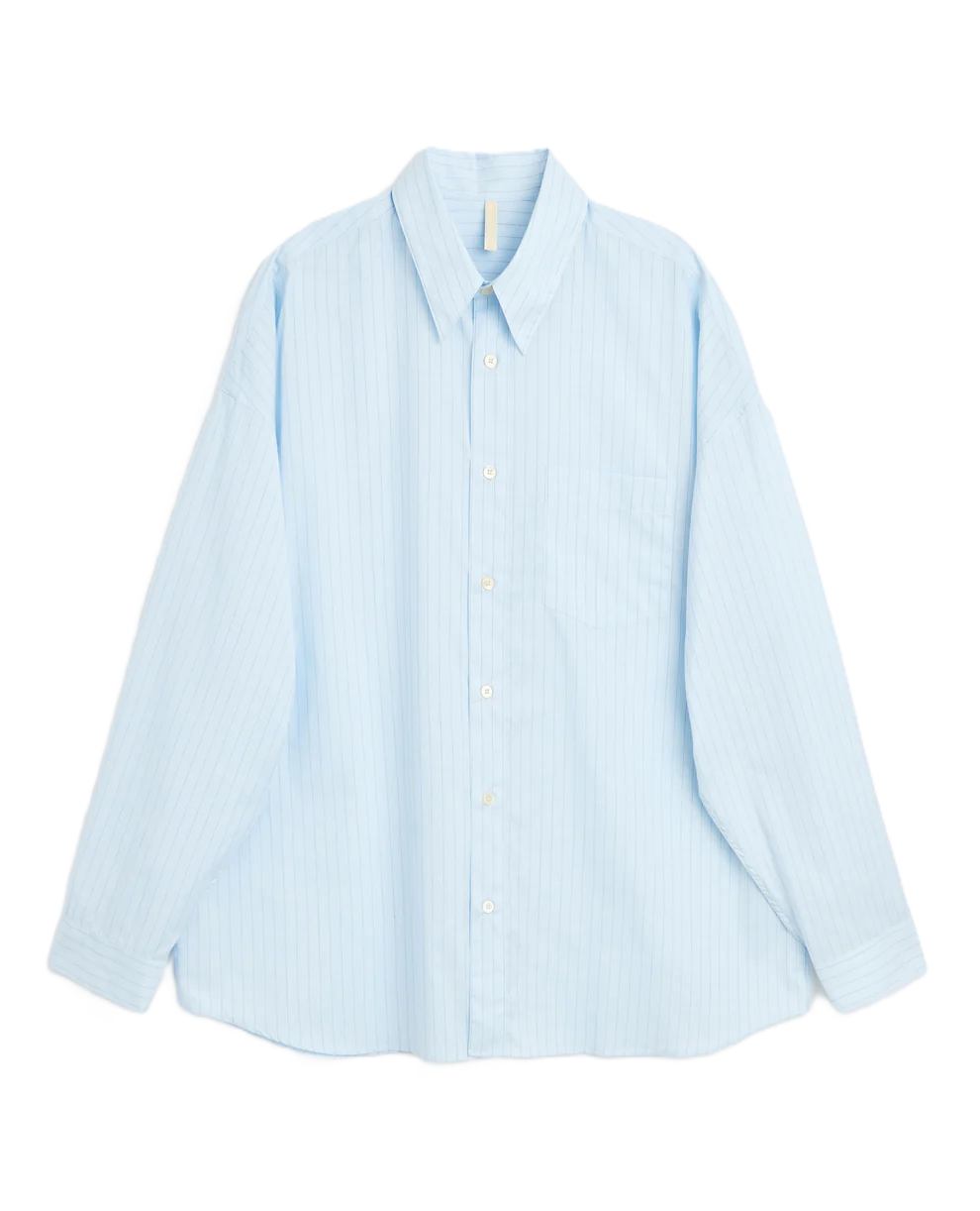 Camicia classica con taschino sul petto e bottoni in vera madreperla. Popeline di cotone e seta con righe tinte in filo, leggera. Bottoni in vera madreperla. Orlo curvo. Taschino sul petto. Vestibilità ampia.