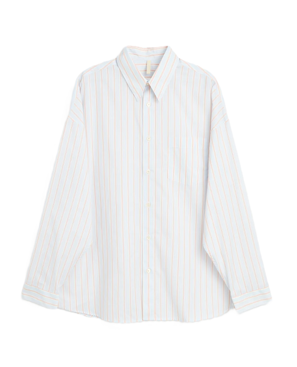 Camicia classica con taschino sul petto e bottoni in vera madreperla. Popeline di cotone e seta con righe tinte in filo, leggera. Bottoni in vera madreperla. Orlo curvo. Taschino sul petto. Vestibilità ampia.