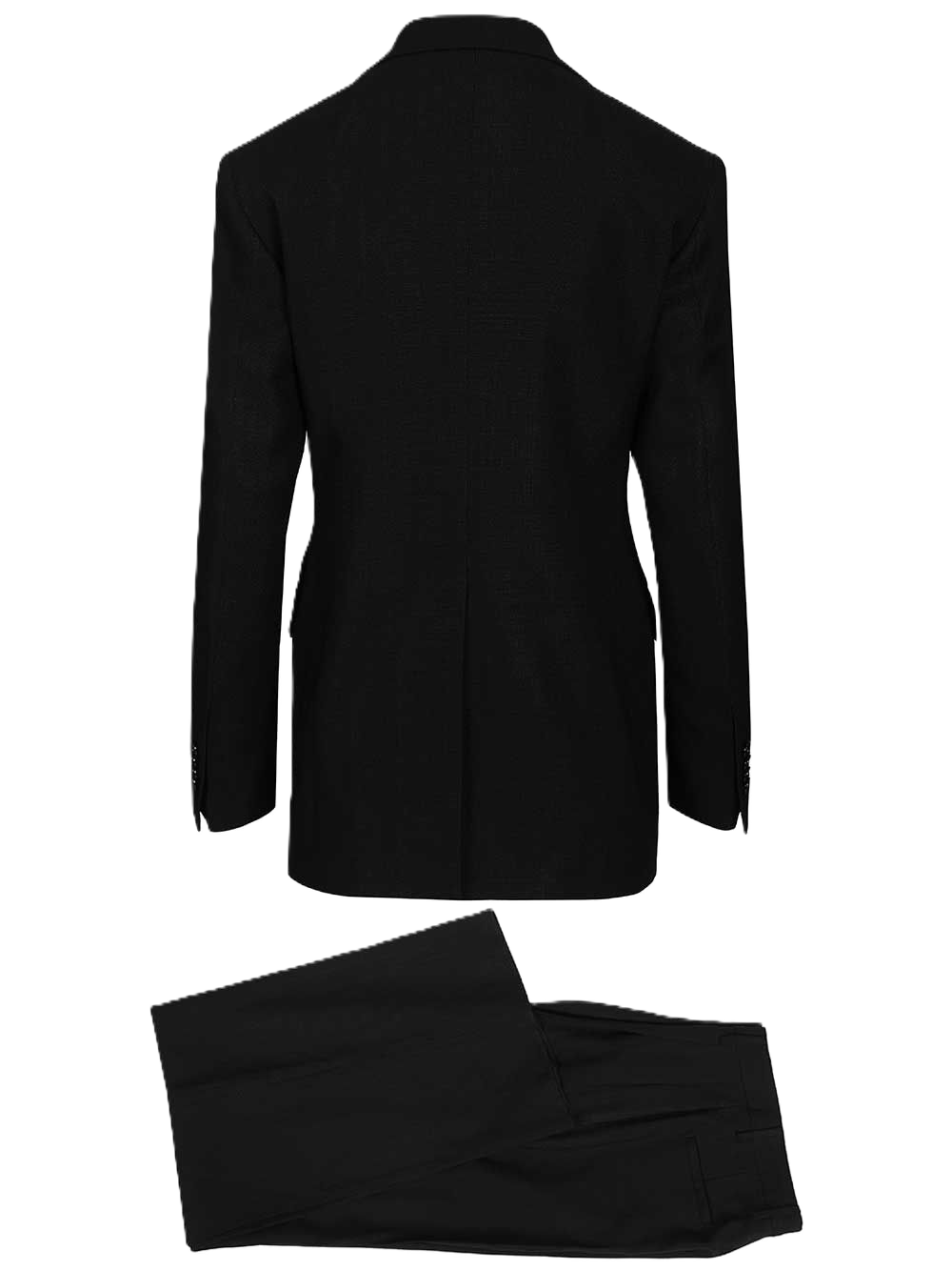 Abito doppiopetto Astra con tasche a patta, completamente foderato e spacco centrale posteriore. Pantaloni con pinces, tasche laterali a filetto e tasche posteriori a filetto.